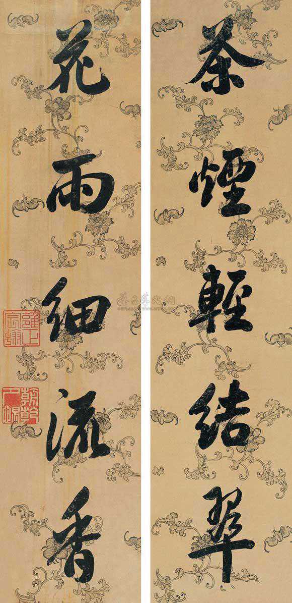 71、竹宜著雨松宜雪;花可参禅酒可仙。(汪士慎自题联)