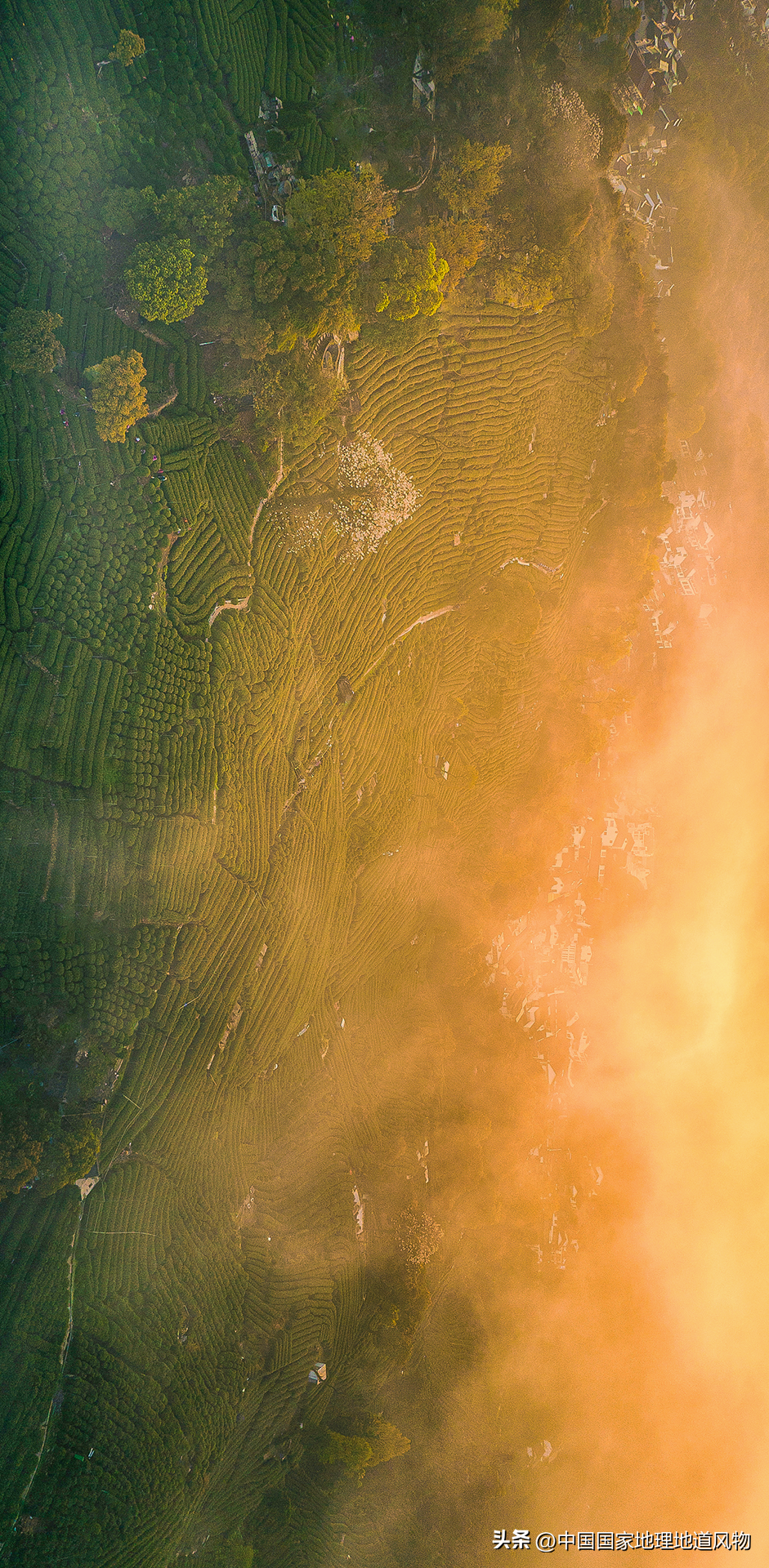 当山、水、云、雾、茶、花等自然元素集合在一幅画框之中,就构成了东方美学中或壮丽或婉约的图景,而中国最美的春天也就定格在这里了。