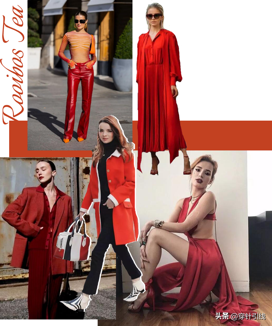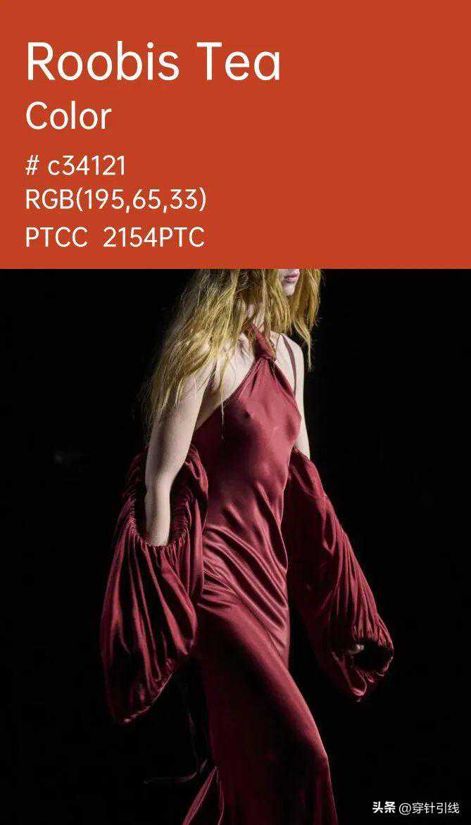 在配色方面,国宝茶红可与同色系、黑色、白色以及金色等搭配,甚至可与橙红色等其他流行色组合。