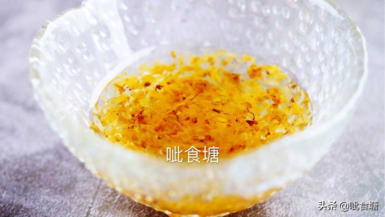 8,最后再淋一点桂花糖和撒一些熟芝麻。不但好看也会更加的好吃。