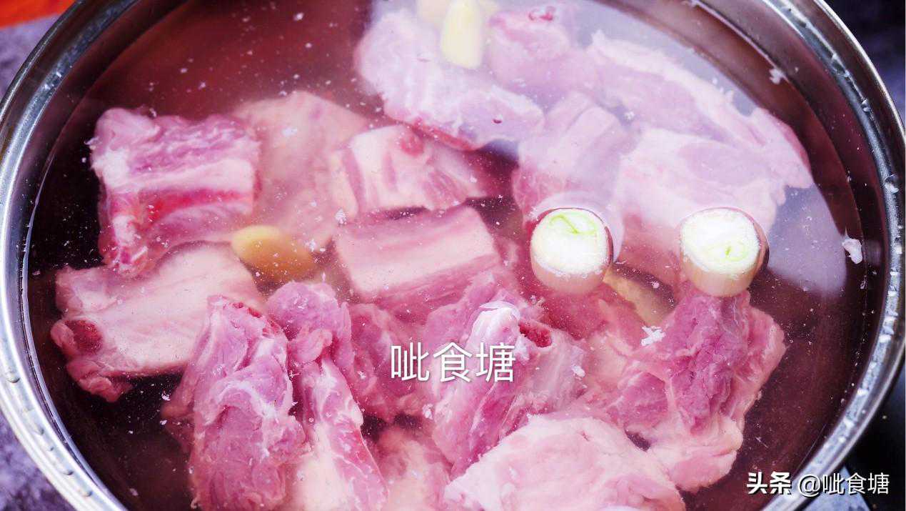 2,排骨冷水下锅加葱姜料酒焯水。一定要冷水下锅哦,这样才能让肉里面的血水慢慢渗出来。而开水下锅后会立刻让表面收紧锁住了里面的血水。