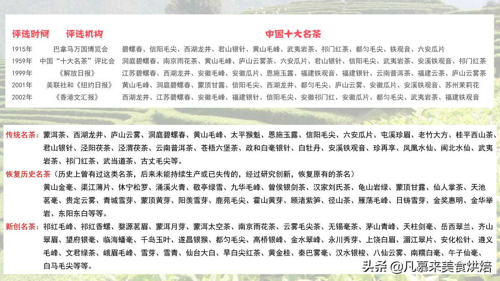 中国传统名茶、中国历史名茶、中国新创名茶