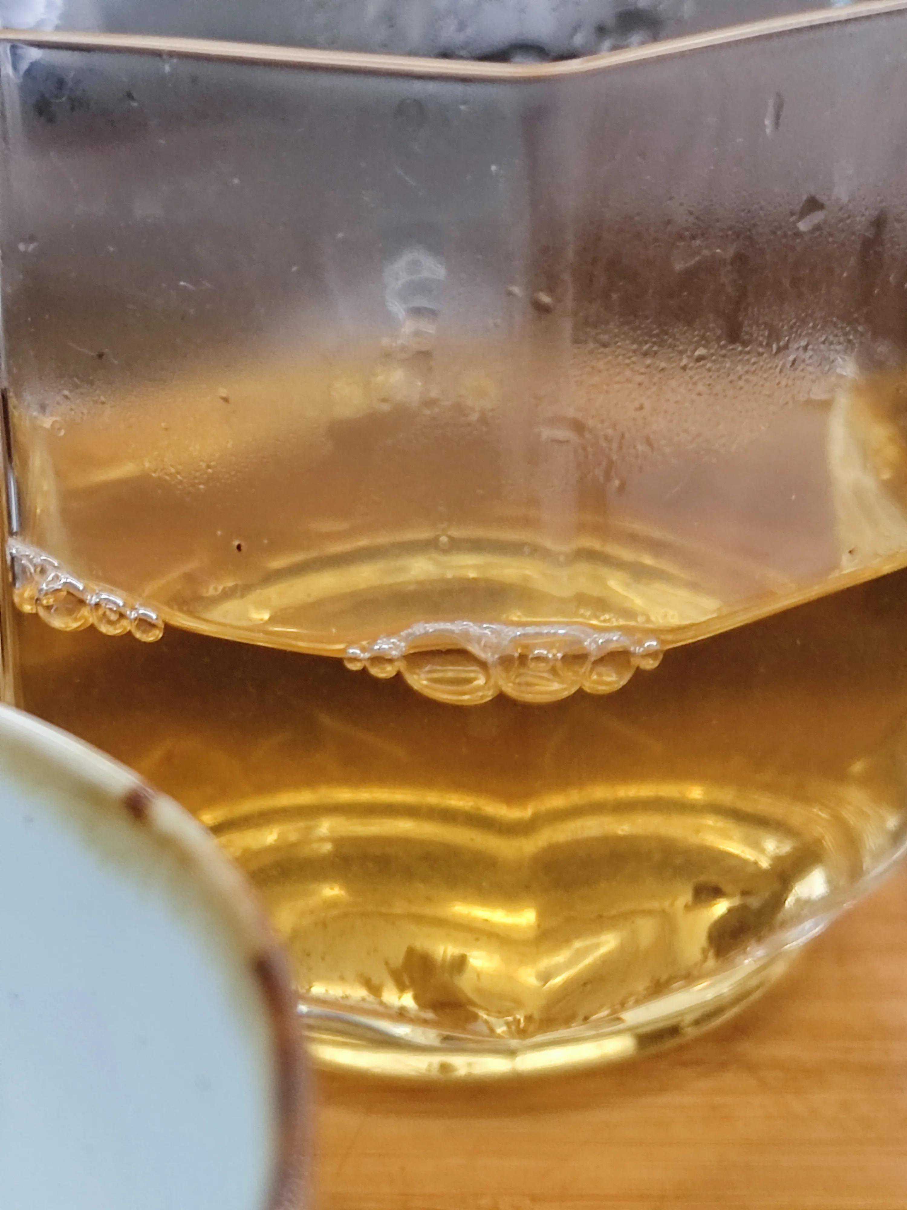 第一泡厚度不错,生津比较迅速,苦底比较单薄,集中在口腔前部,强度不低。几无涩感。整体协调性尚可。香气上为蜜甜香。汤感不错。回甘喉韵还浅。在茶底香上有明显的豆香,比前几年的特沱更明显。挂杯香也比较淡。