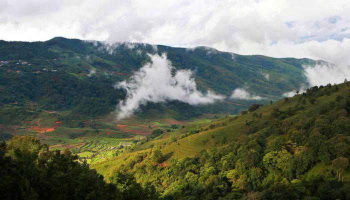 举目环视,茂密的原始森林叠嶂如峦,白色的云于林中山涧自由穿梭,阳光偶尔从云缝中透下来,形成明暗交替的好看景致。
