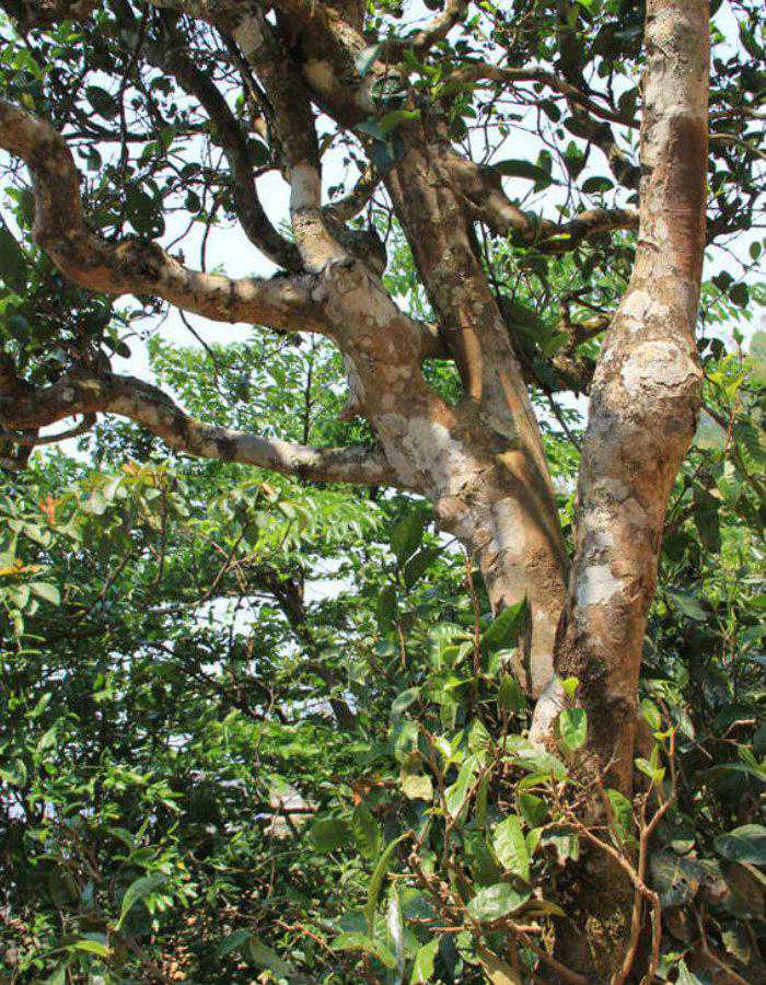 在这样的一个物种丰富且自成良好生态系统的深林中,高大的古茶树往往是以藤蔓攀附、青苔众生的形象出现。