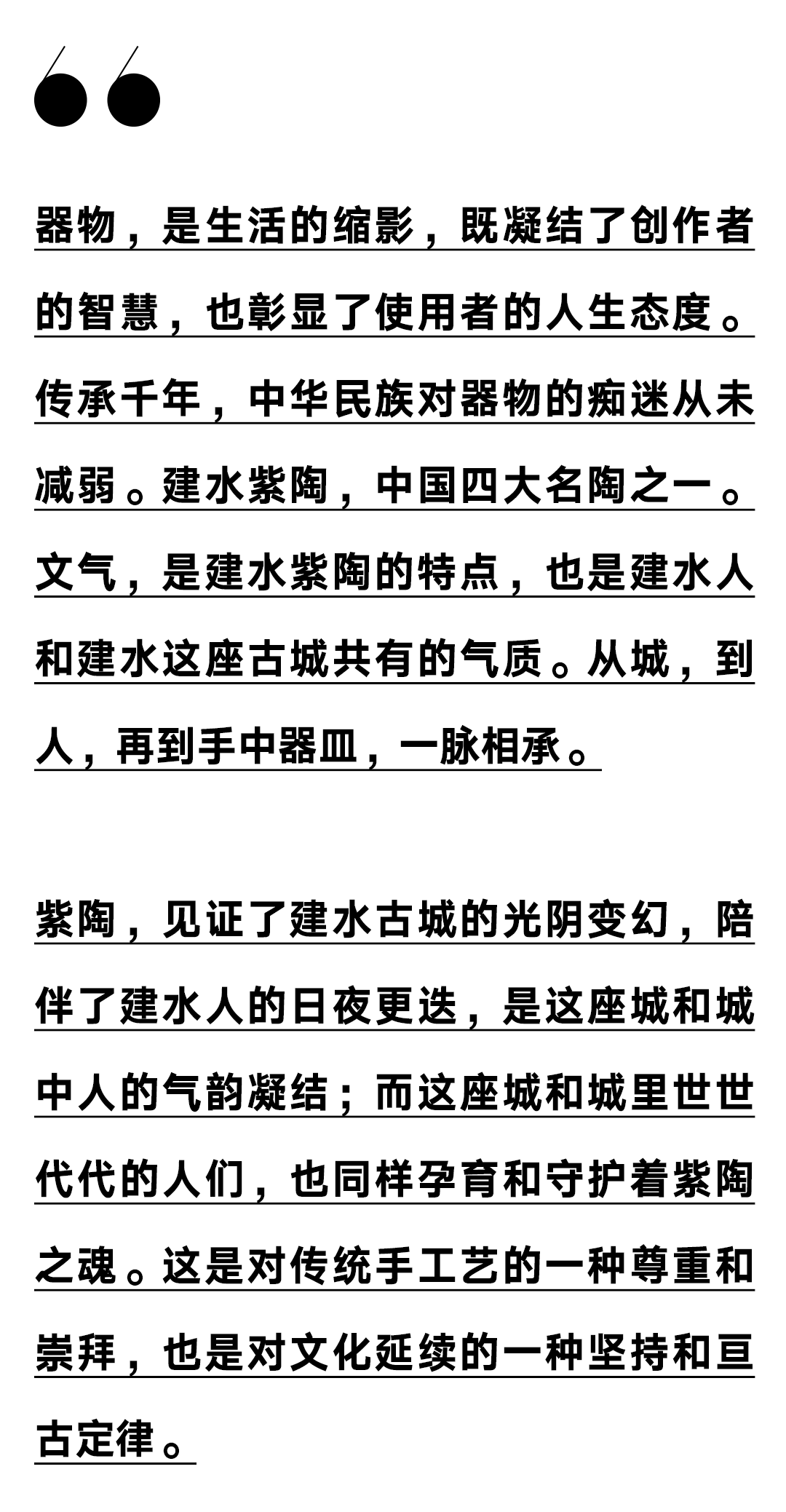 紫陶,见证了建水古城的光阴变幻,陪伴了建水人的日夜更迭,是这座城和城中人的气韵凝结;而这座城和城里世世代代的人们,也同样孕育和守护着紫陶之魂。