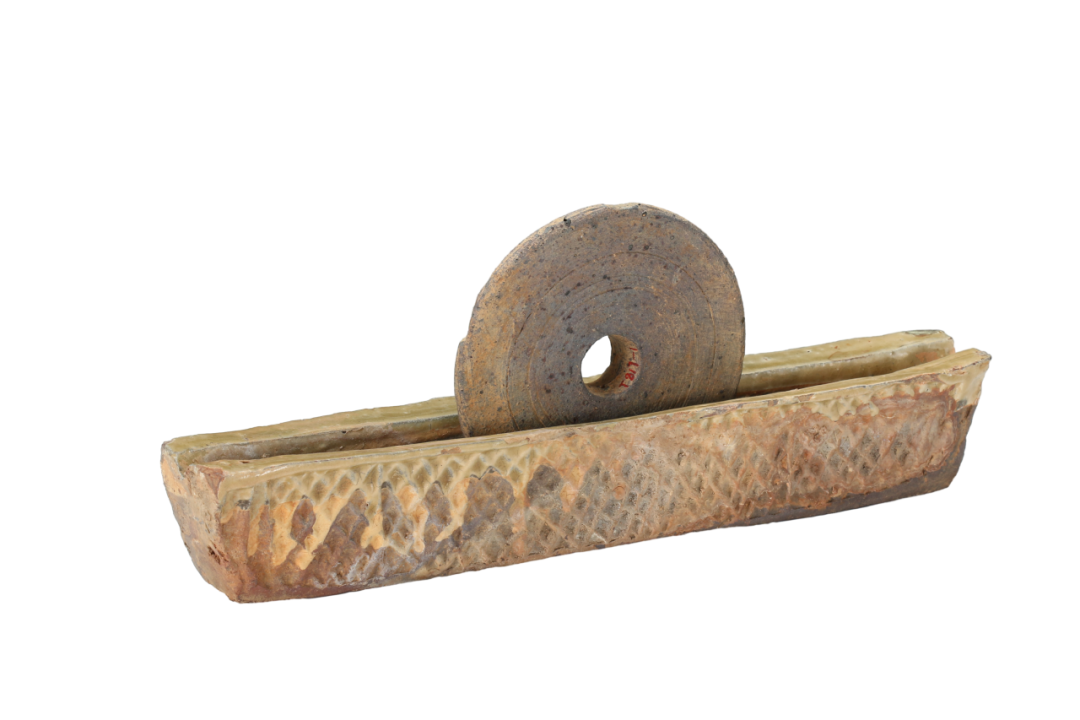 唐褐釉茶碾碾:长29.9宽5.2高4.7轮:直径10.9