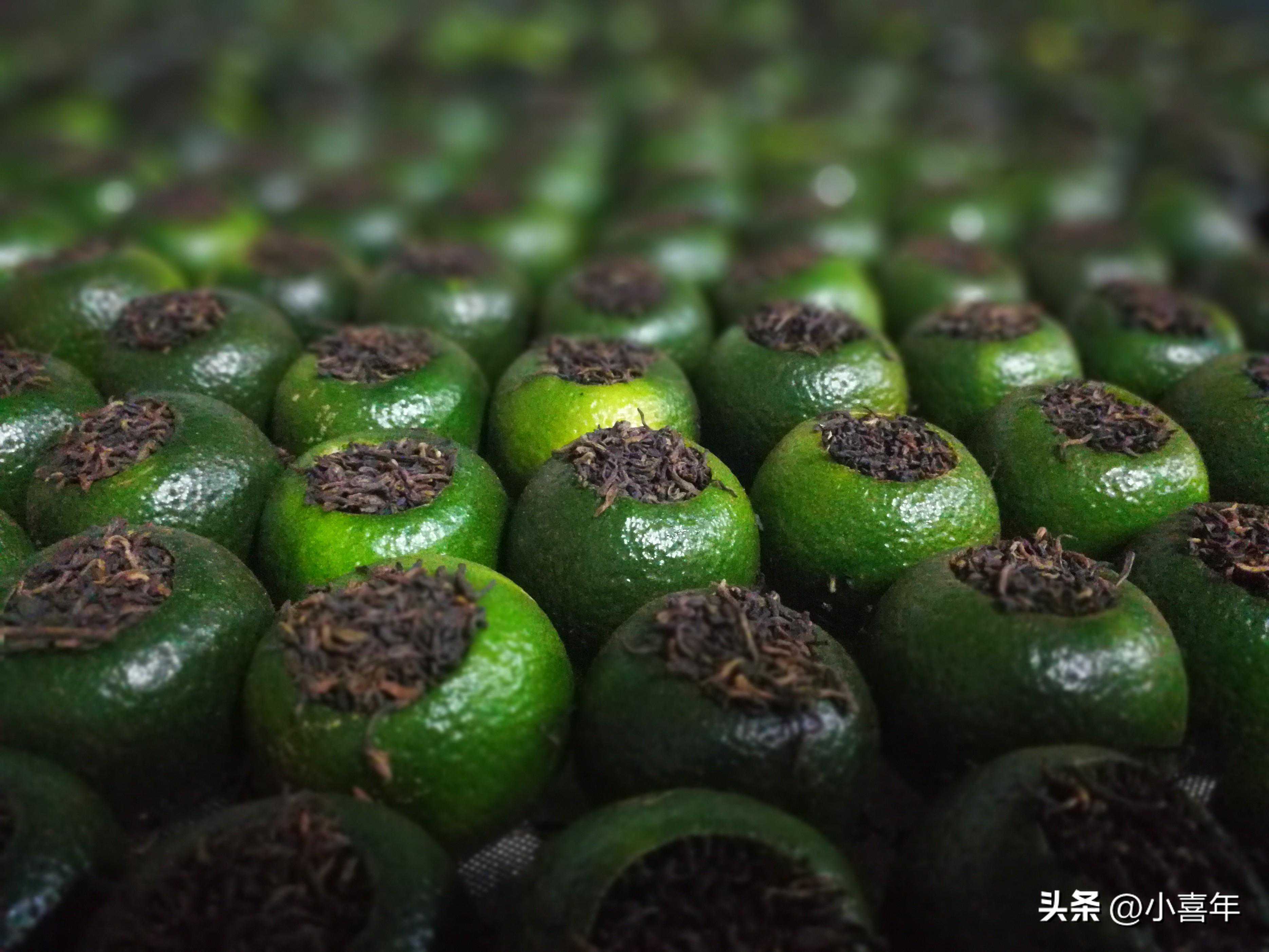 7月并不是一个收获的季节,但是只有在这个时间,有一款茶才能被加工出来,在这个季节,大量的普洱茶会从云南运过来,和新会此时正青涩的茶枝柑一起做成一款茶,它就是小青柑!