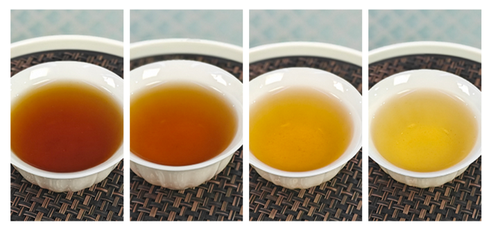 汤色茶汤橙红透亮如琥珀,滋味醇厚,回甘浓厚,令人回味,细品还能尝到杏仁味。