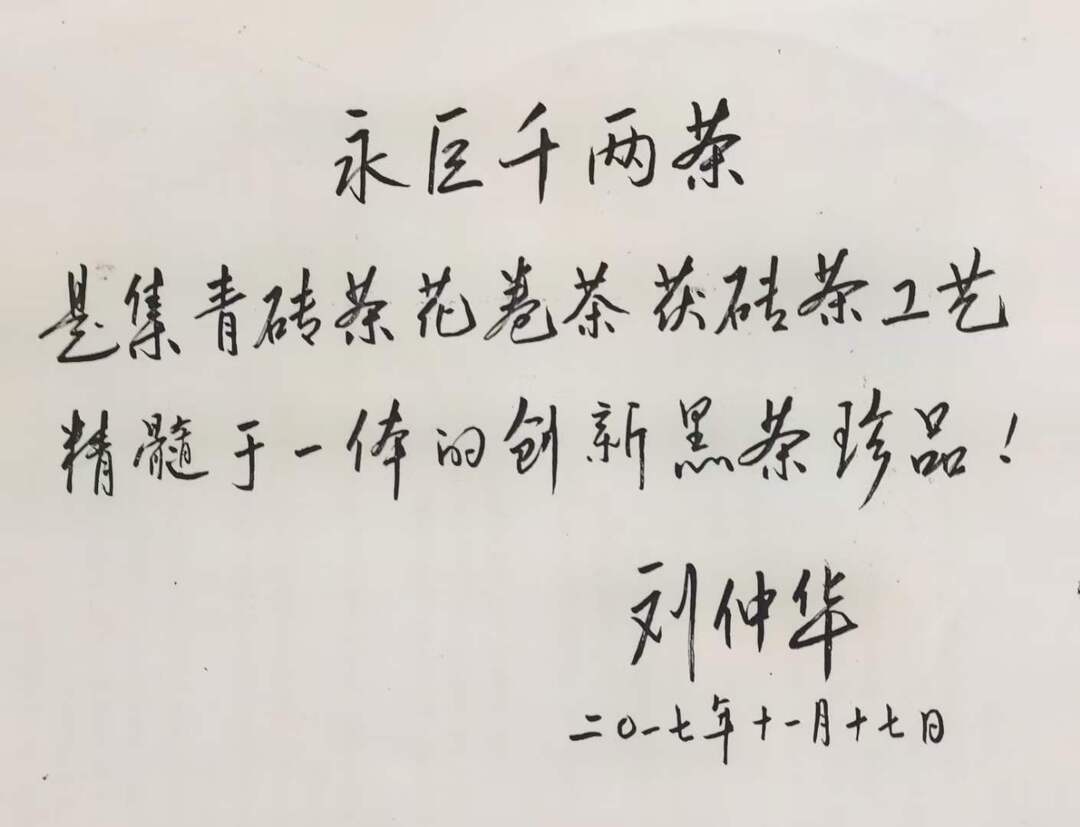 中国工程院刘仲华院士曾赋予“永巨千两茶是集青砖茶花卷茶茯砖茶工艺精髓于一体的创新黑茶珍品”的美誉,对永巨典藏千两茶高度的认可,让永巨人感到十足的自豪感。