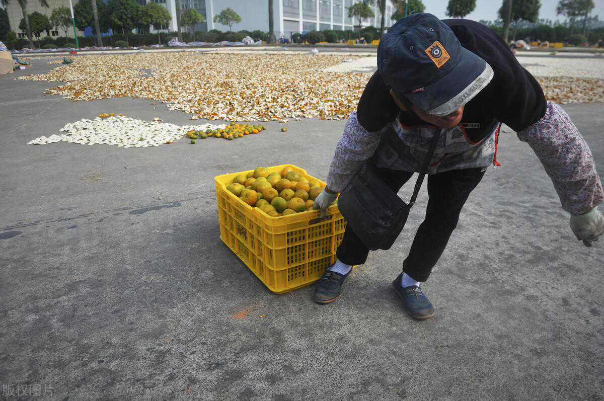第二批采摘时间在每年农历十月左右,这时候果皮已经泛黄,叫二红柑,也叫黄皮,主要用来制作调味料;