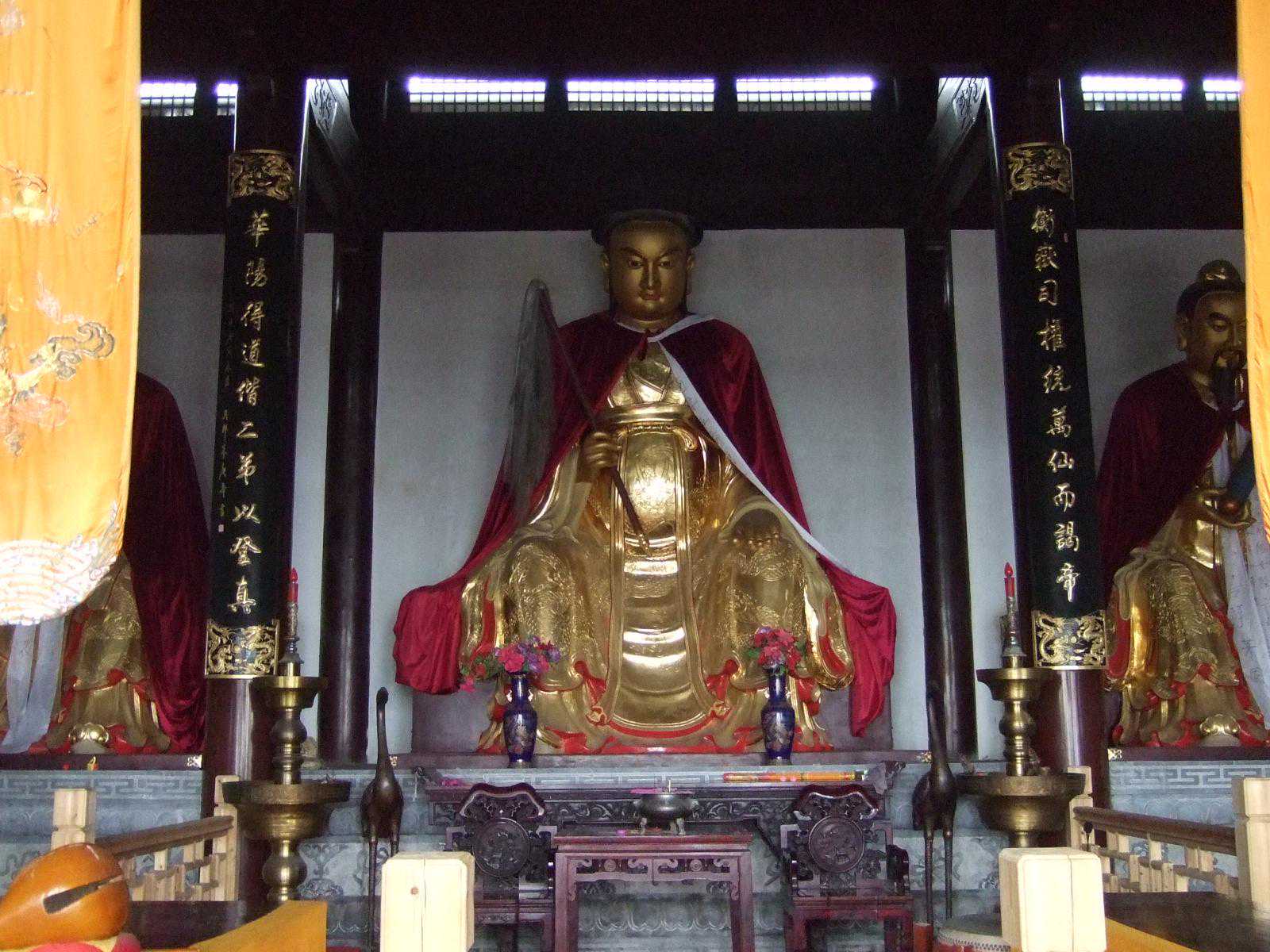 上真观是一座正一派的道观。规模大且有道士住持。现在的建筑物虽然看起来非常新,但当地的信仰历史却非常悠久,山门上挂着一块“皇清勅建上真观”的横匾。穿过山门沿着长长的台阶笔直拾级而上到达了一座很大的殿宇,里面供奉着三茅君。解说的牌子上写着“茅盈、茅固、茅衷三兄弟在穹窿山修行,之后去了茅山得道升仙了。”
