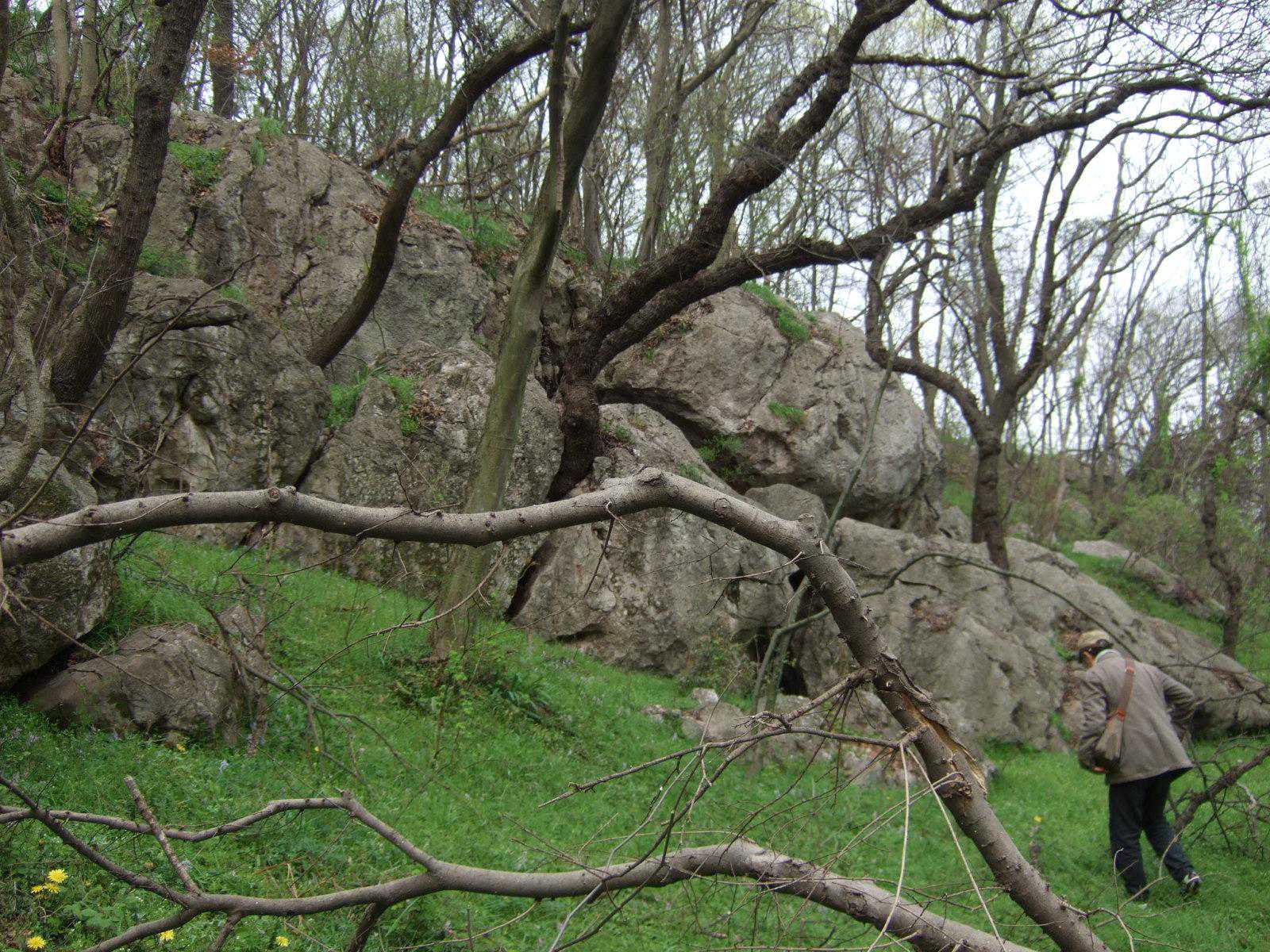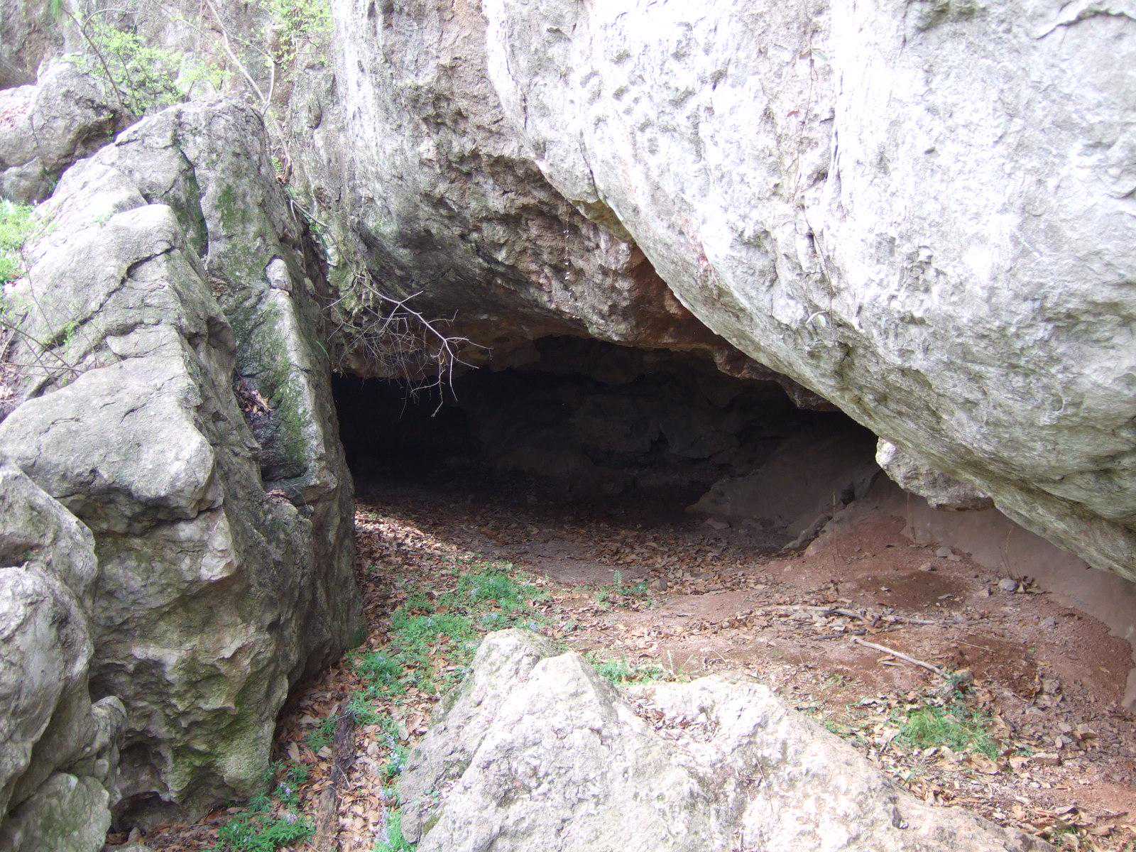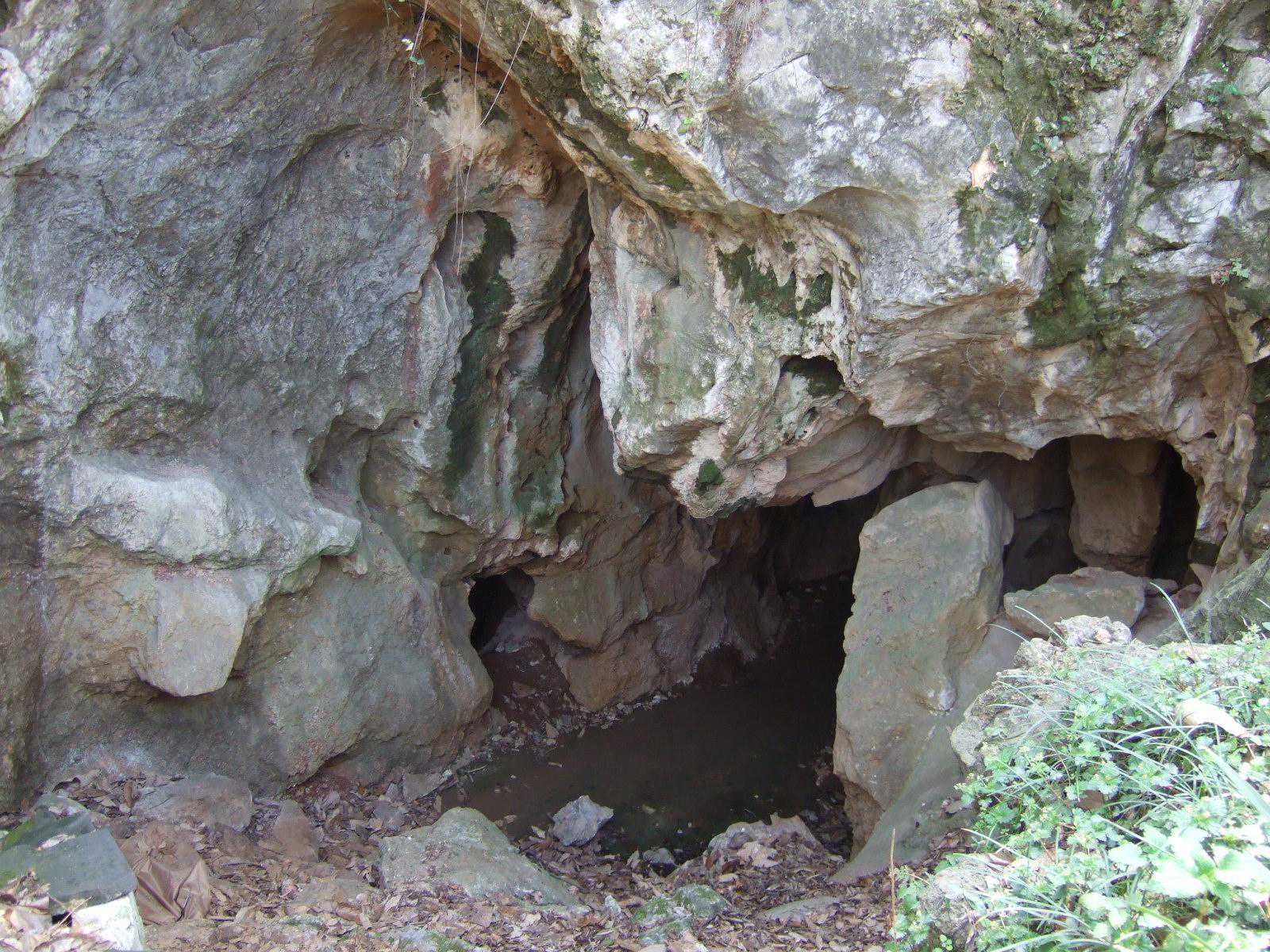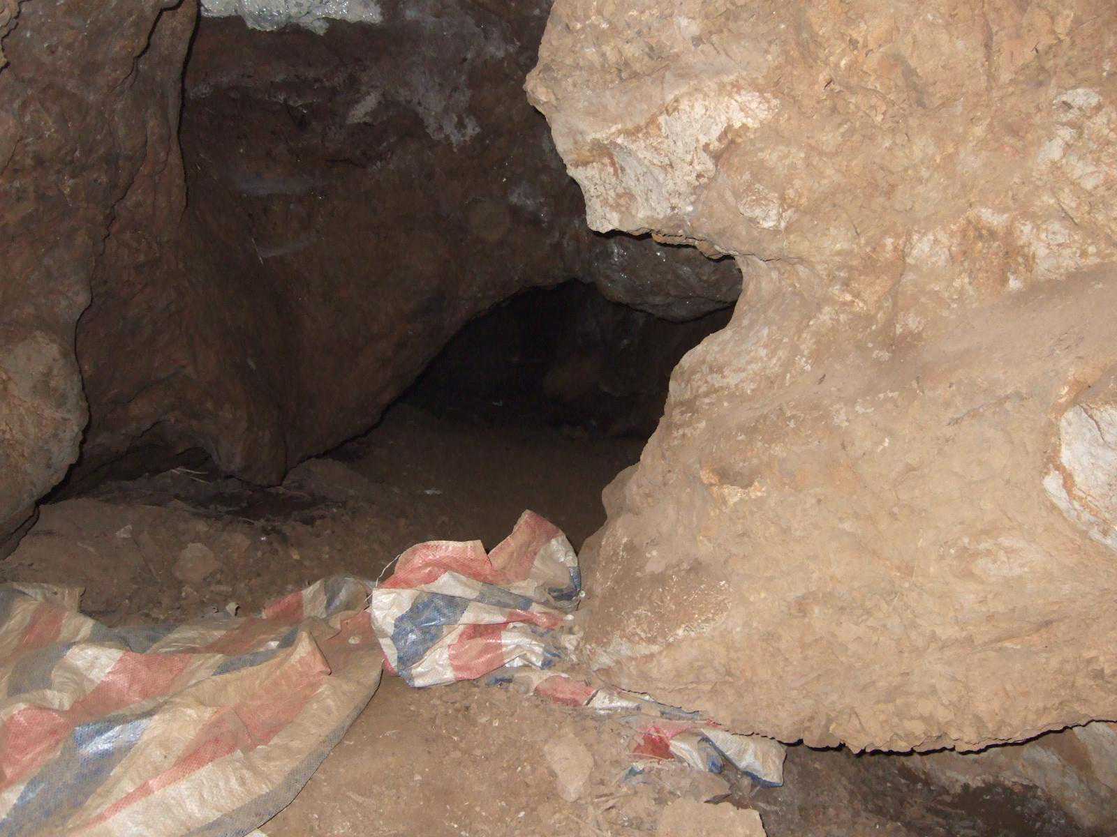 我们应该已经来到了老虎洞(古良常洞)的附近,这算是一个小小的成果,于是我们就开始归途,然后在茅墓路上又遇到几个当地村民,驾驶员向他们问了一下,果然都说知道老虎洞的位置。经过驾驶员与其中一人交涉,很幸运,他愿意带我们去老虎洞。由他与驾驶员在前带路,我们再次从登山口进入山道。从登山口进去数百米后,他带着我们离开山道,朝着水库的方向拨开茂盛的杂草丛,进到了一处长满了杂草丛的山坡,什么都看不到。那里有很多长着刺的植物非常扎人。这位村民似乎不是很记得清位置了,在杂草丛中迂回前行了一会,跟着住民走在前面的驾驶员突然发出喊声,似乎是找到了洞窟。我们随后也到了洞窟。