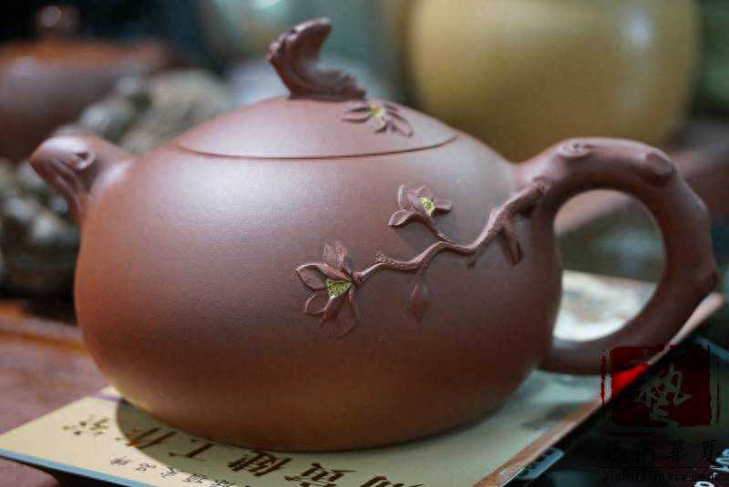 玉兰壶,精美的做工加上壶嘴、壶把处玉兰花浮雕,使得该壶充满诗情画意。