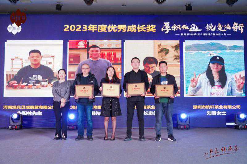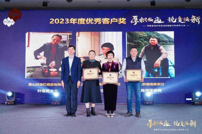 会议当天,为感谢合作伙伴们在2023年不畏挑战,逆风飞扬,为祥源茶稳健、持续发展做出的突出贡献,祥源茶还特别设置了2023年度新锐客户奖、年度优秀成长奖、年度优秀客户奖、和年度突出贡献奖四个奖项。