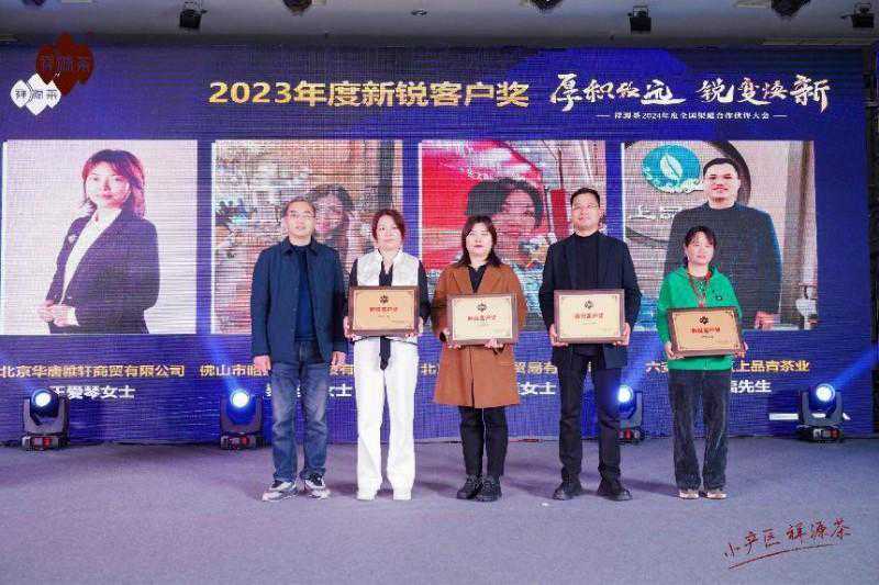 ▲祥源茶2023年度新锐客户奖获得者合影