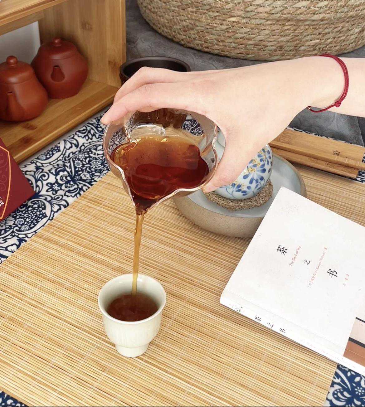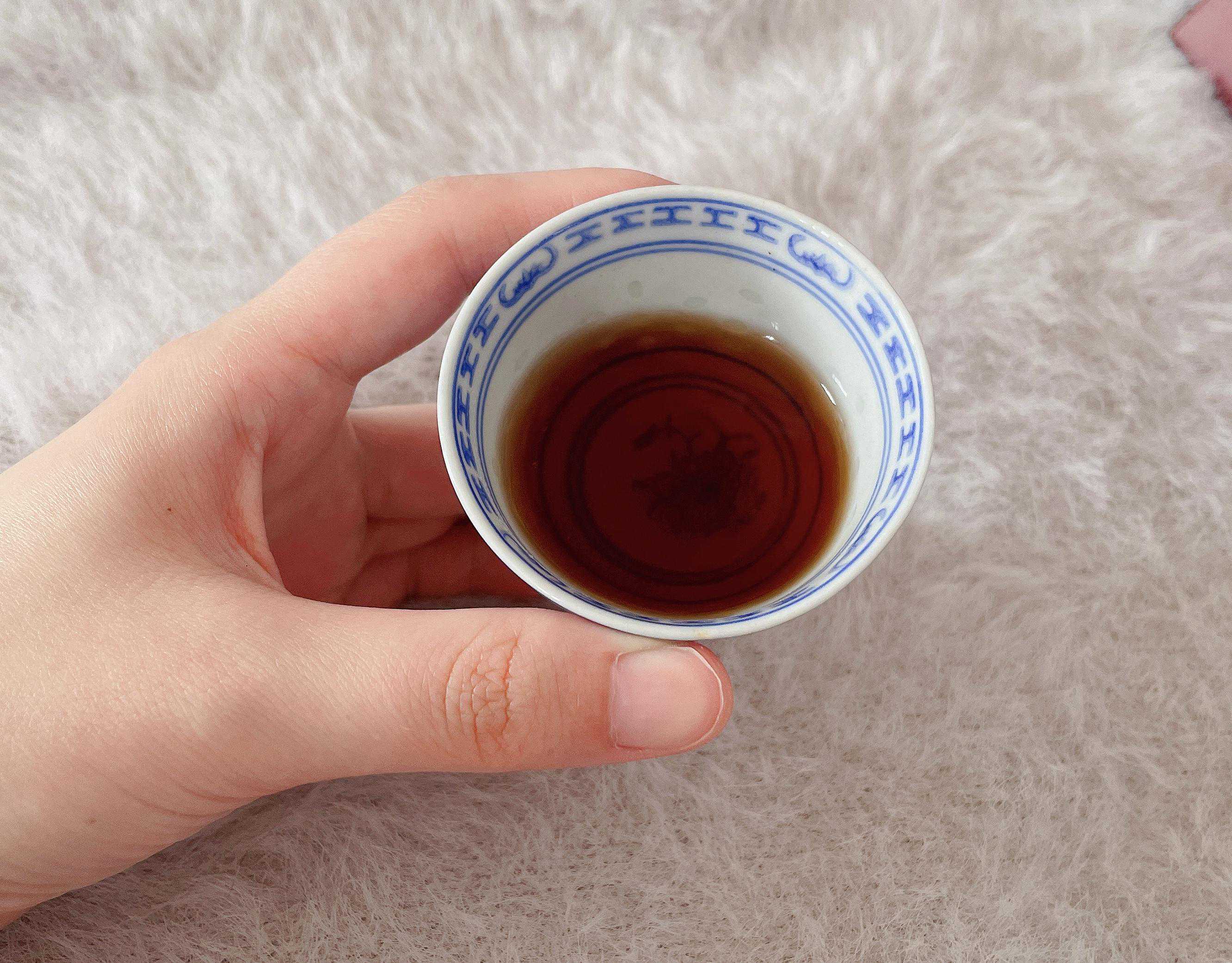 第二泡茶汤颜色红褐,香气陈香明显带蜜香、枣香;