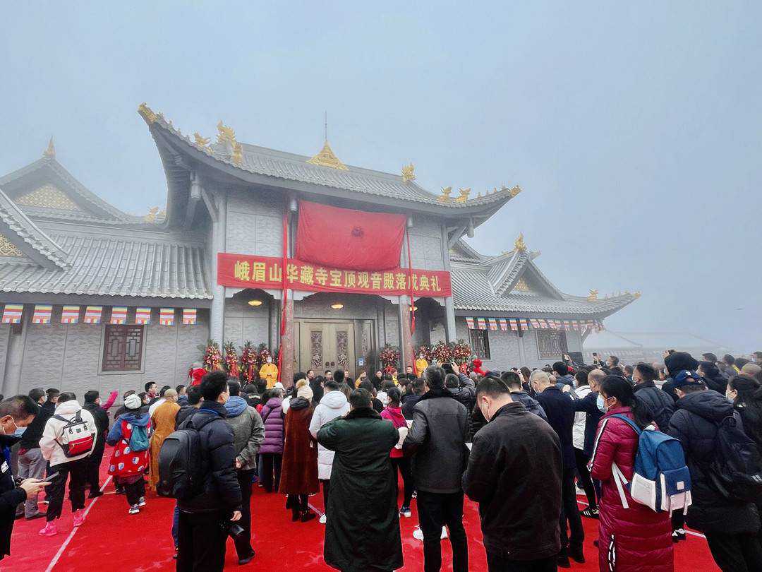 新建成的华藏寺宝顶观音殿,包括观音殿主殿以及禅堂、僧伽寮房、念佛堂、钟鼓楼、五观堂等附属设施,建筑面积1100平方米,为峨眉山再添一处胜景。峨眉山市文旅局相关负责人介绍说:“宝顶观音殿的落成,既是峨眉山佛教文化传承和发展的最新成就,也是景城联合打造世界级旅游景区的具体举措和推进景区扩容提质的重要成果,更是对省委省政府赋予乐山‘建设世界重要旅游目的地’重要使命的生动回应。”