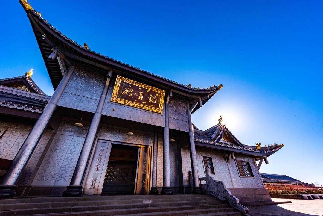千座名山一座顶,金顶是峨眉山自然风光精华所在地和中国汉传佛教海拔最高的朝圣中心。早在明代,宝昙禅师便开启了以金顶、银顶、宝顶三顶为主体的峨眉山华藏寺寺院建筑群格局。新中国成立后,党的宗教政策得到贯彻落实。进入21世纪以来,峨眉山实施金顶综合整治提升工程,第一期建成金顶金殿、大雄宝殿,银顶卧云禅院及十方普贤圣像。第二期为恢复重建华藏寺宝顶观音殿工程,自2016年起建设,历时5年完成。