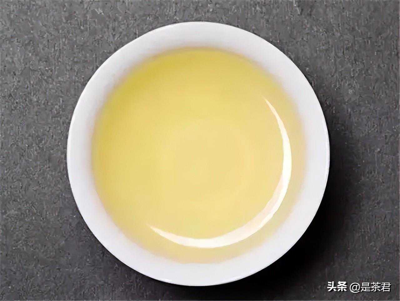 浅黄:汤色黄而浅,亦称淡黄色。