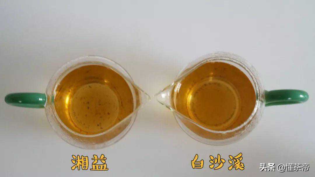 最后我们来看叶底,湘益的叶底是褐绿色,较为柔软,但明亮度不如白沙溪;