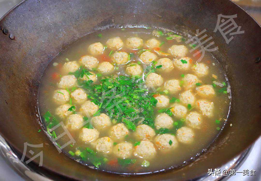 抓一把馅料在虎口处挤成丸子,用小勺挖入锅中,如果粘勺子的话,可以在勺子上沾点清水,丸子全部飘起来以后加入食盐3克,胡椒粉2克,鸡精2克,搅拌化开调料,把锅中的浮沫打干净,撒上葱花和香菜,再淋入适量的芝麻香油就能出锅了,一道鲜嫩可口的鸡肉丸子就做好了。