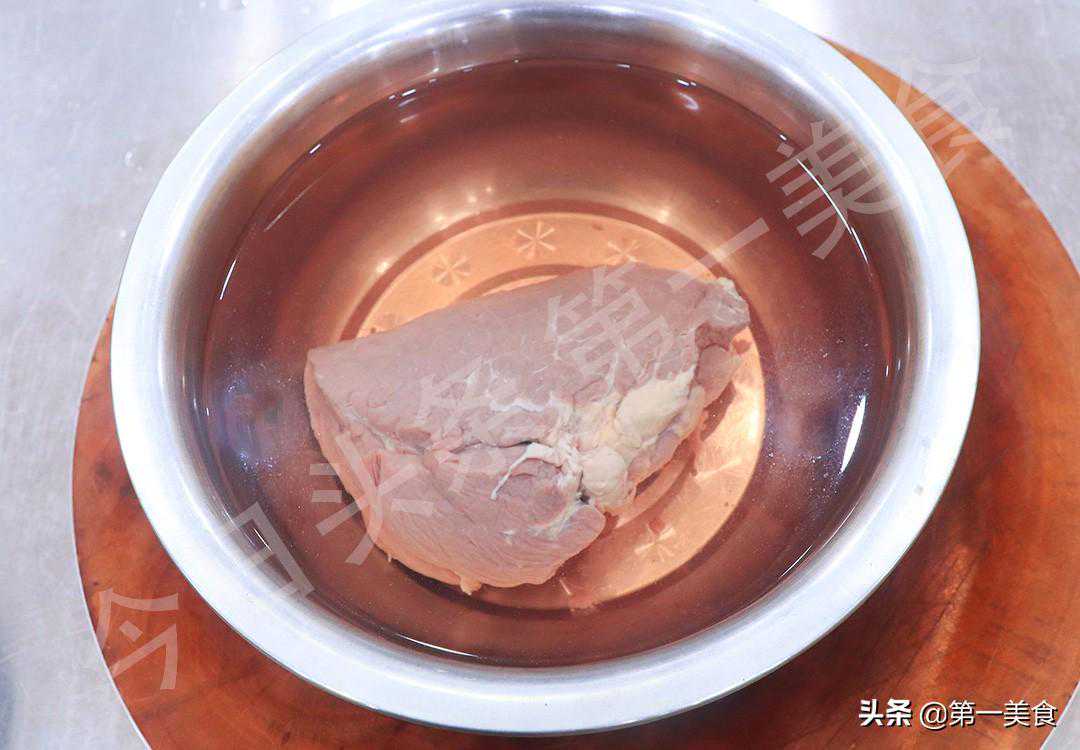1.准备食材:准备一块牛肉,放在清水中浸泡3个小时,期间每隔一个小时换一次水,充分去除里面的血渍。