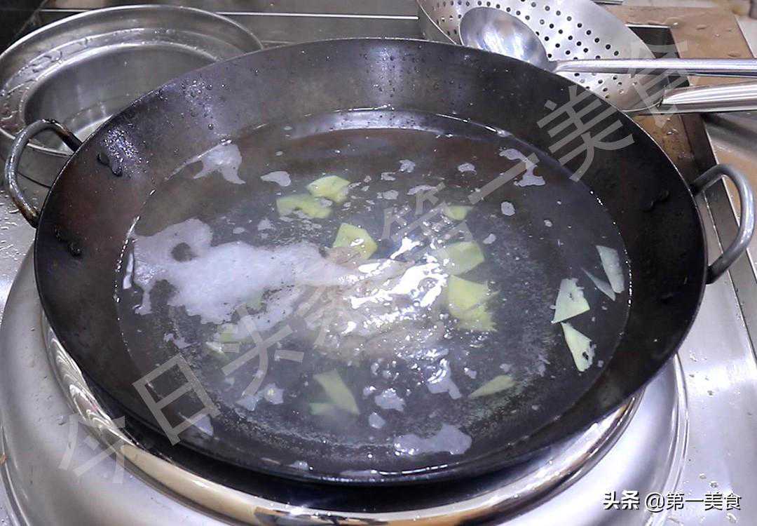3.准备煮制:准备半锅清水放入牛肉,煮的时候不要放太多调料或者香料,放几片生姜压一下腥味即可,尽量保持汤的原滋原味,千万不能放食盐,食盐容易使蛋白质凝固,煮出来的汤不够浓白,而且会造成水分流失,牛肉吃起来干硬发柴,把锅中的浮沫打干净,盖上锅盖开中火煮2个小时。