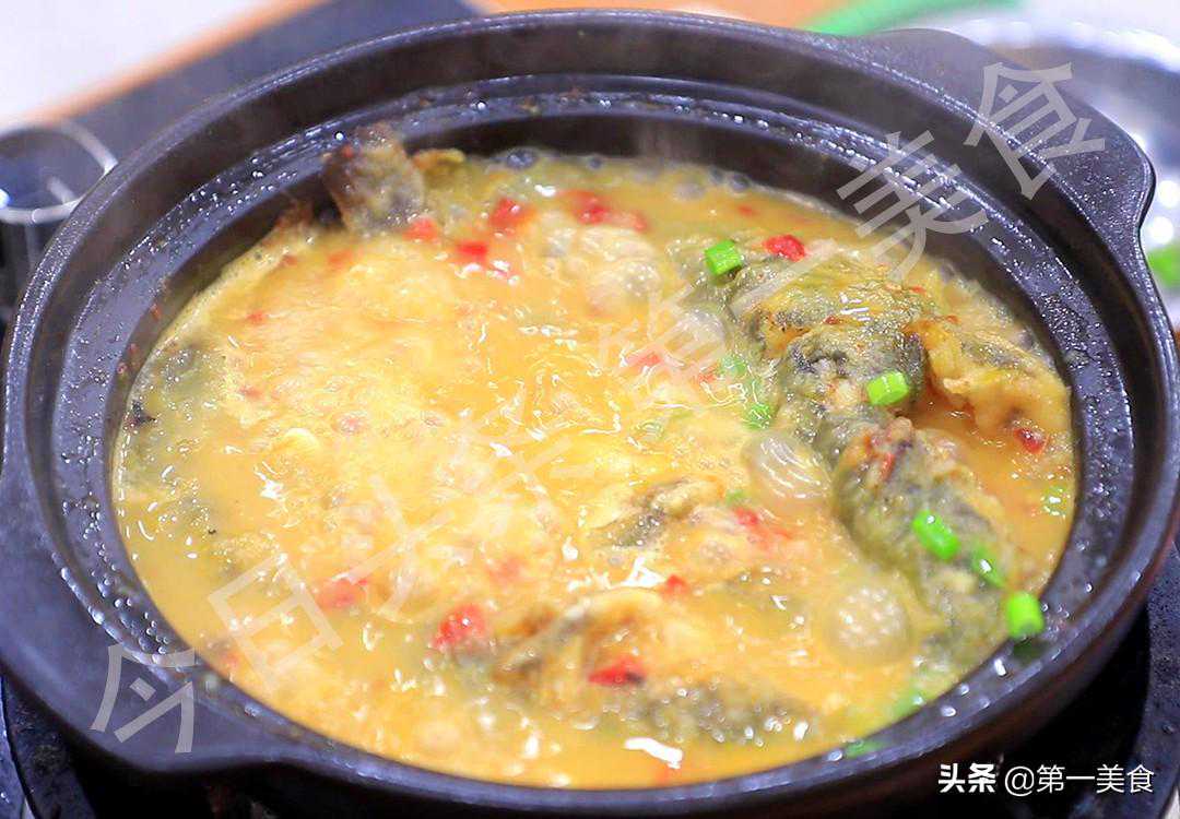 4.开始烹饪:准备一个砂锅烧热,倒入菜籽油,油温五成热时放入姜蒜片爆香,倒入剁椒炒出里面的水分,剁椒炒香以后放入黄骨鱼,淋入一些高度白酒,焖煮10秒钟去除腥味,倒入适量的开水没过黄骨鱼,加入胡椒粉2克,盖上锅盖转小火煨10分钟。