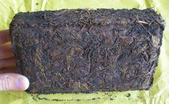 黑砖茶因以黑毛茶为原料、色泽黑润、成品块状如砖而得名。其原料采用湖南省安化、桃江、益阳、汉寿、宁乡等县茶厂生产的优质黑毛茶。其砖面色泽黑褐,内质香气纯正,滋味浓厚微涩,汤色红黄微暗,叶底老嫩尚匀。