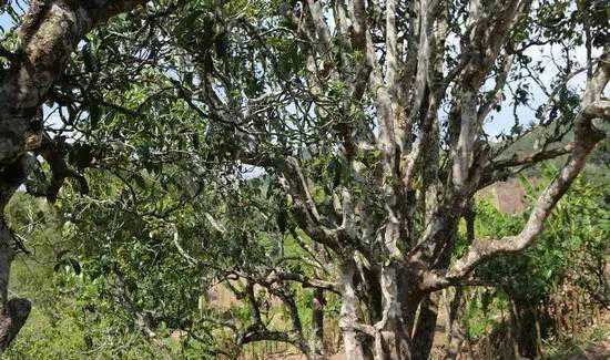 在老乌山,随处可见农户家房前屋后或地边零星的长满古茶树,以干径10-30厘米的百年古茶树居多,有独树成林的大叶种茶,也有树枝弯弯曲曲的革枝杨柳茶,还有众多的藤条茶。近几年来,古茶价格逐年攀升,当地农户保护古茶意识逐渐增强,在茶农的精心养护之下,古茶再现勃勃生机。