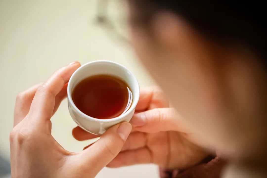 吞下茶汤后,咽喉清爽,口腔香气好,陈香独特纯正,甘香持久。