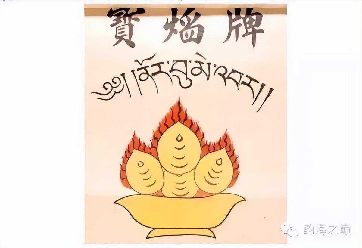 宝焰牌商标由红、黄、黑3种颜色组成,香炉采用宝鼎黑边,金黄色金鼎;炉内四个桃形图像为元宝,象征贡茶;炉中之火象征佛光。整个商标象征佛光普照,吉祥如意。