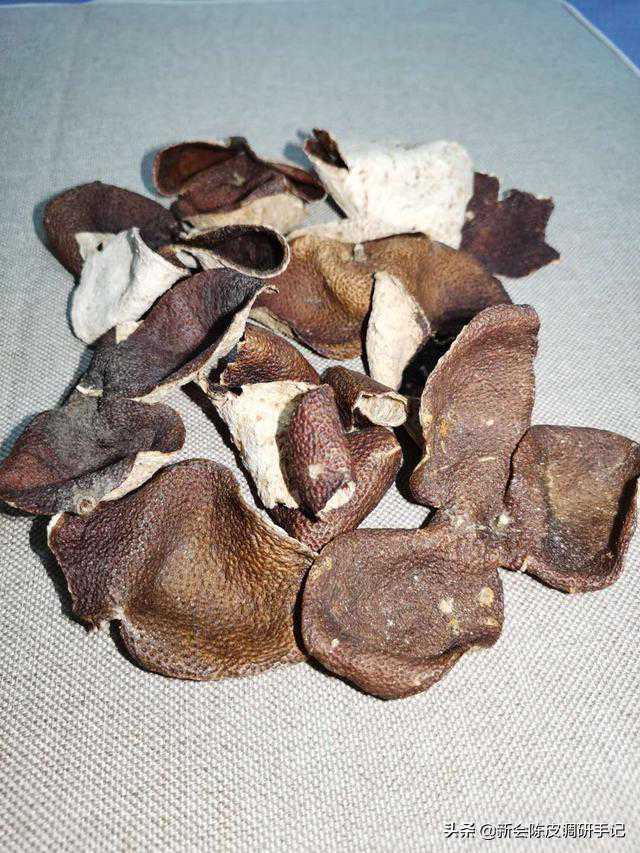 左边是新会柑皮(新剥),右边是广西柑皮(晒干)