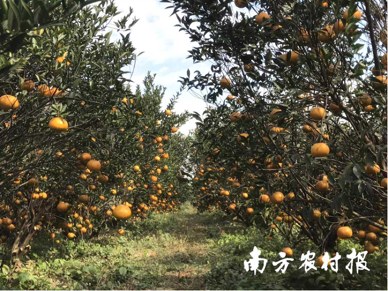 柑香四溢,金黄满园,新会柑基地内,工人们在一列列柑树前手起剪落,忙得热火朝天,到处洋溢着丰收的气息。