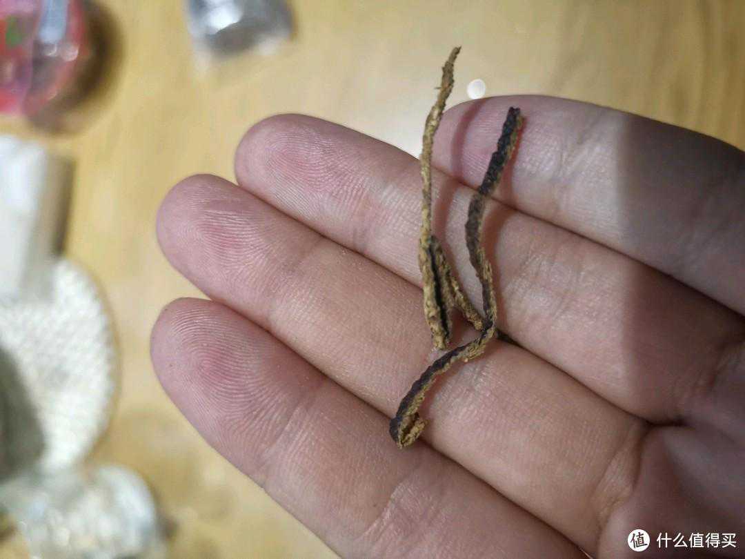 陈皮丝。这是之前叶卡给我寄的,大部分都被我当零食吃了。晚上剩这点泡了一壶菊花金银花陈皮茶,挺好喝的。