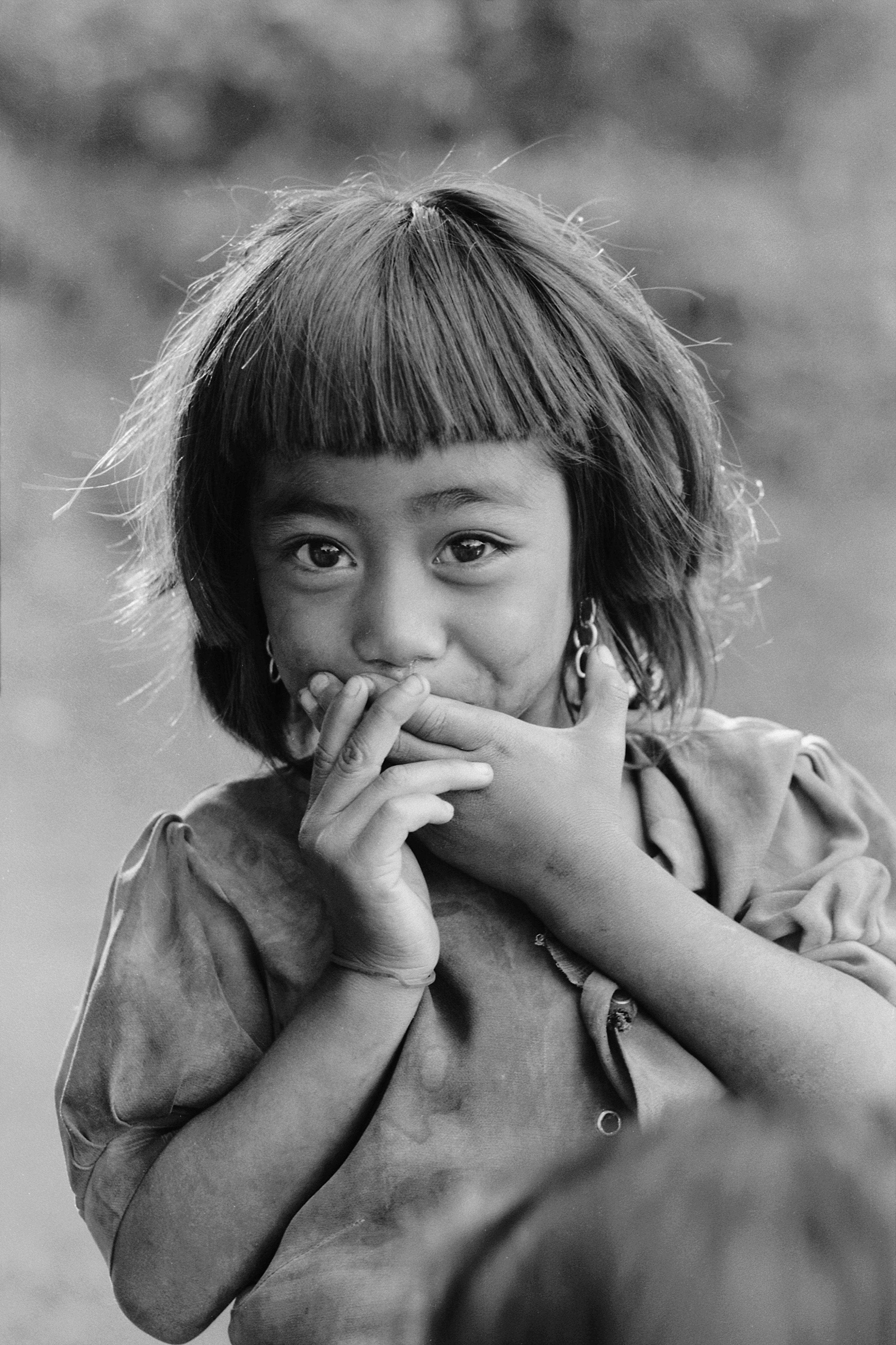 2000年12月,竹楼上互换衣服拍照的布朗族姑娘。下次进山,再把照片带给姑娘,照片常被喜欢某个姑娘的小伙子悄悄“收藏”,一年半载后,姑娘喜欢上了别的男孩子,小伙子才会把照片还给对方。