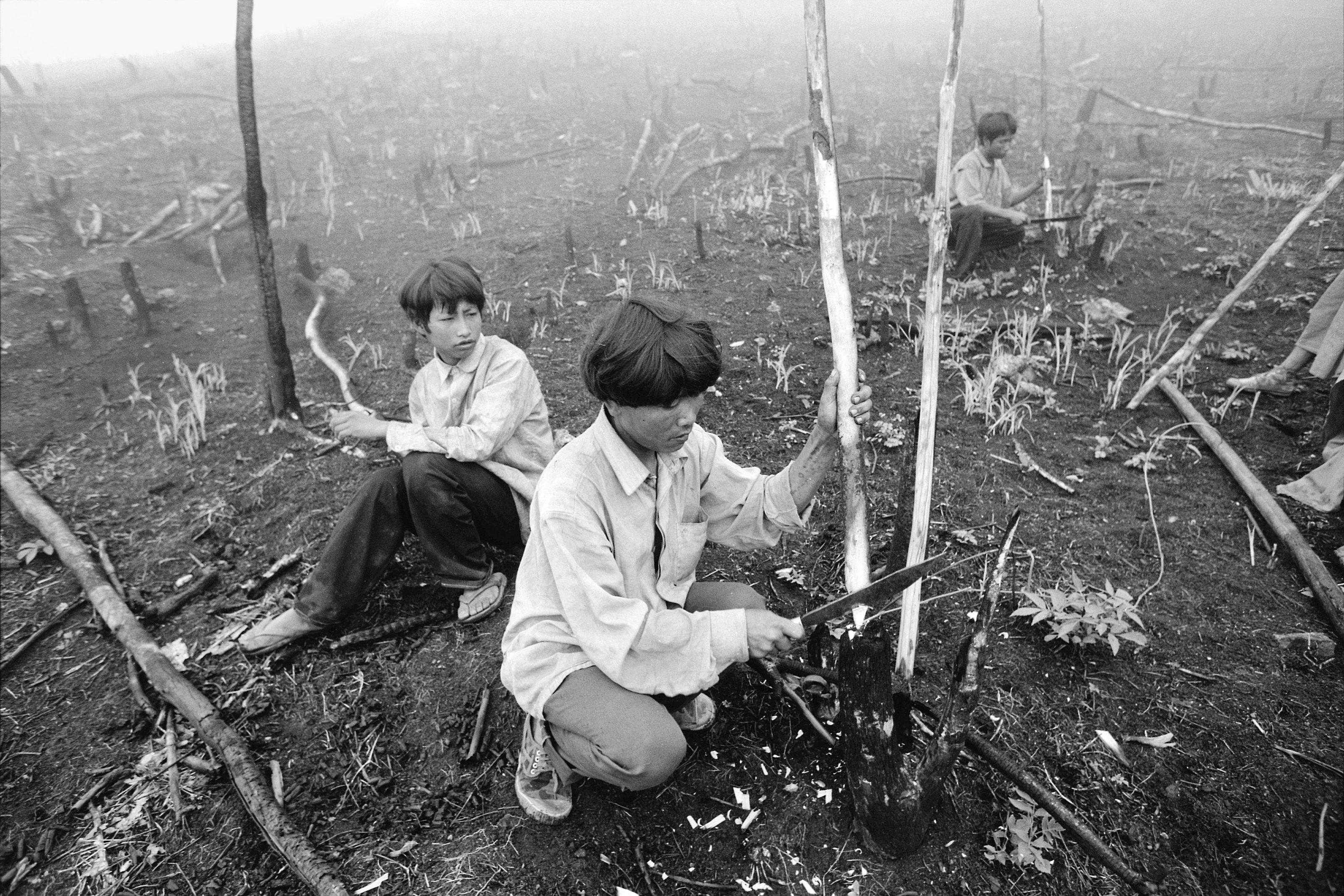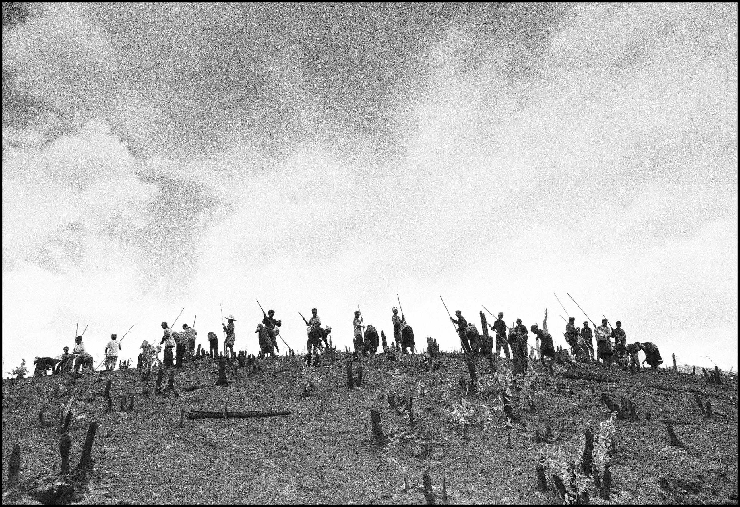 在对布朗山的拍摄中,摄影师处理许多劳作场景的照片均采用了全景构图策略,以表现散落在广袤无垠大地上的人们如同蚁群般在大地上艰辛地劳作,一代一代重复着只有他们自己才能明白的民族习俗和生存方式。
