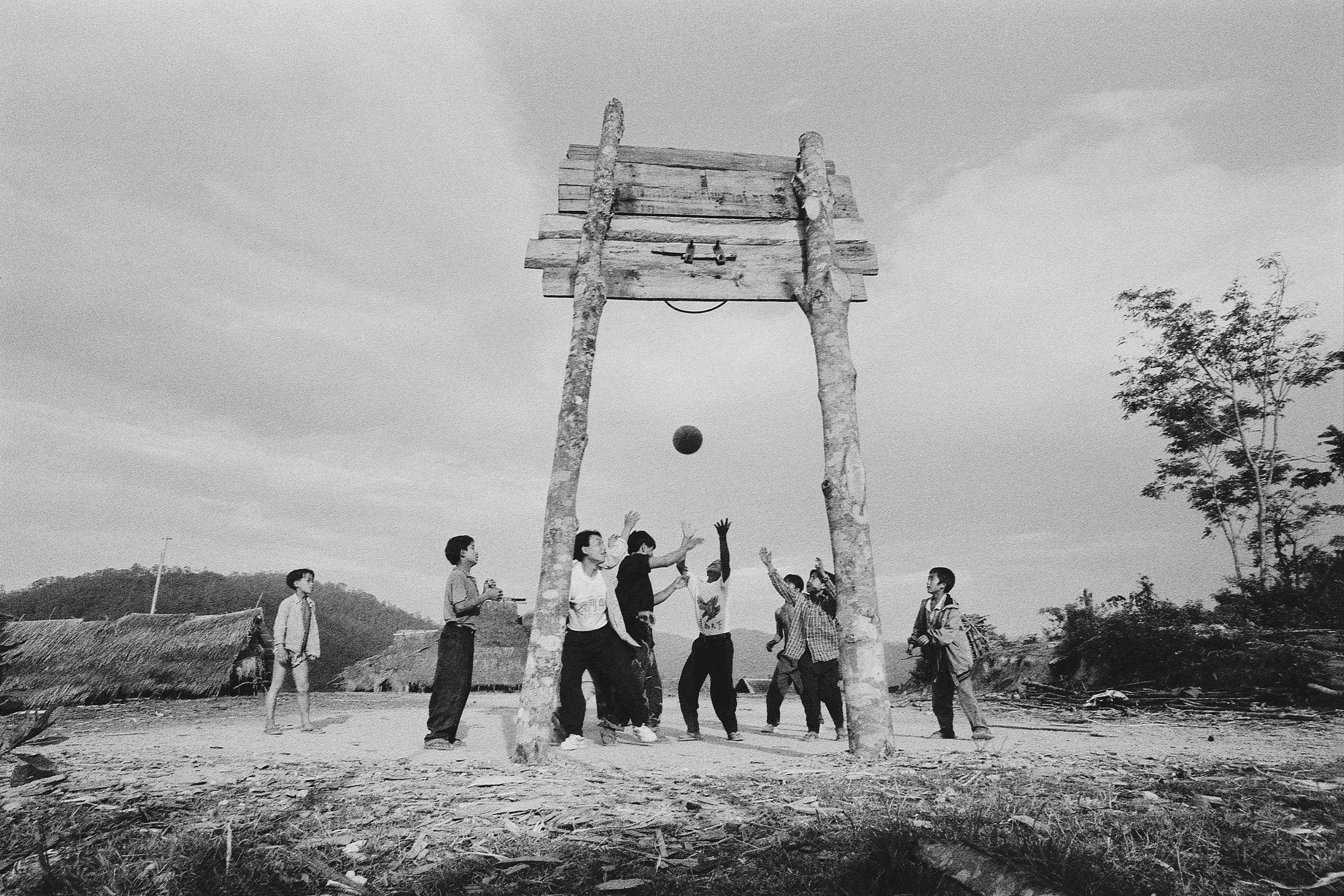1998年4月,在学校篮球场上打篮球的孩子。