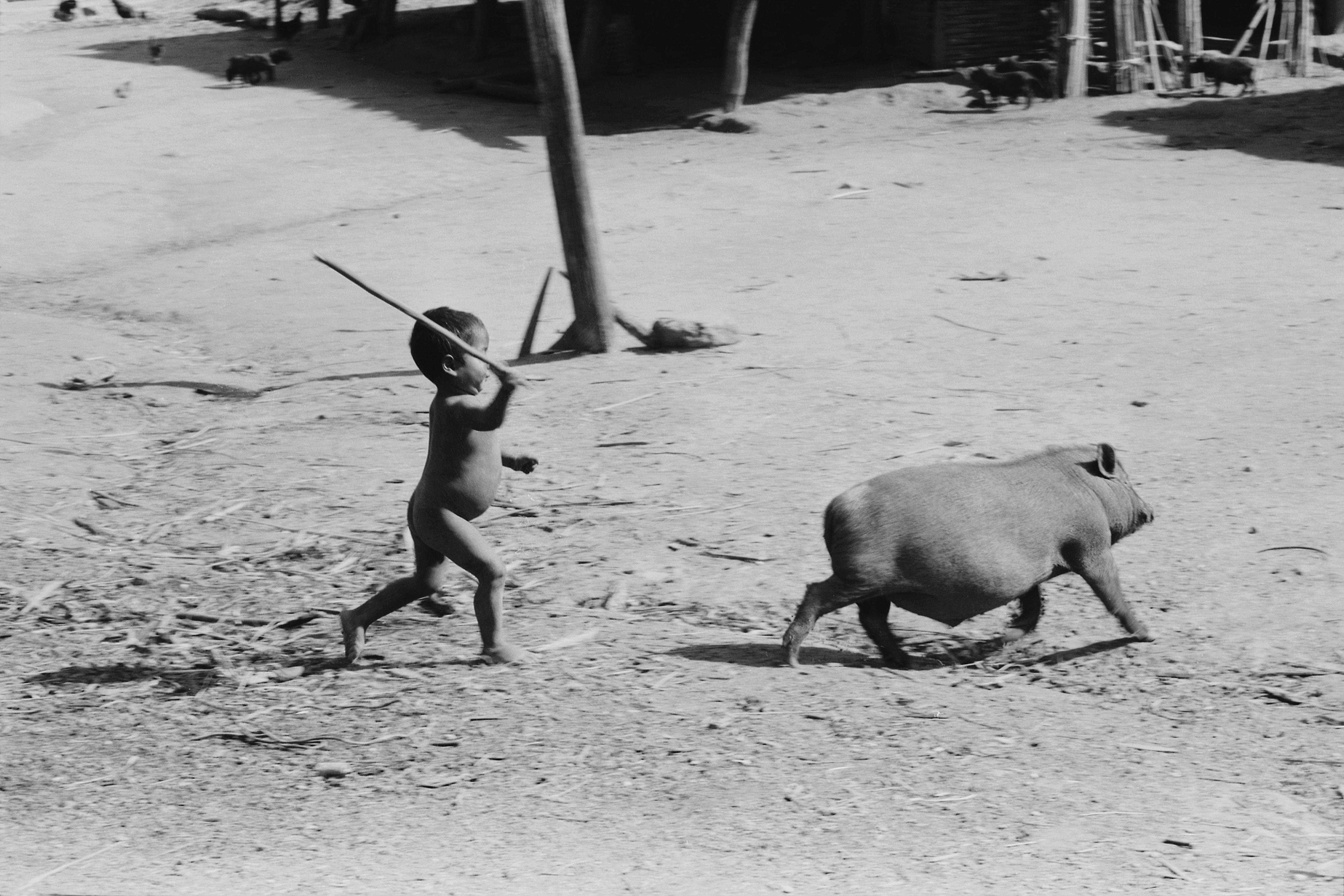 2000年10月,赶猪的小男孩。