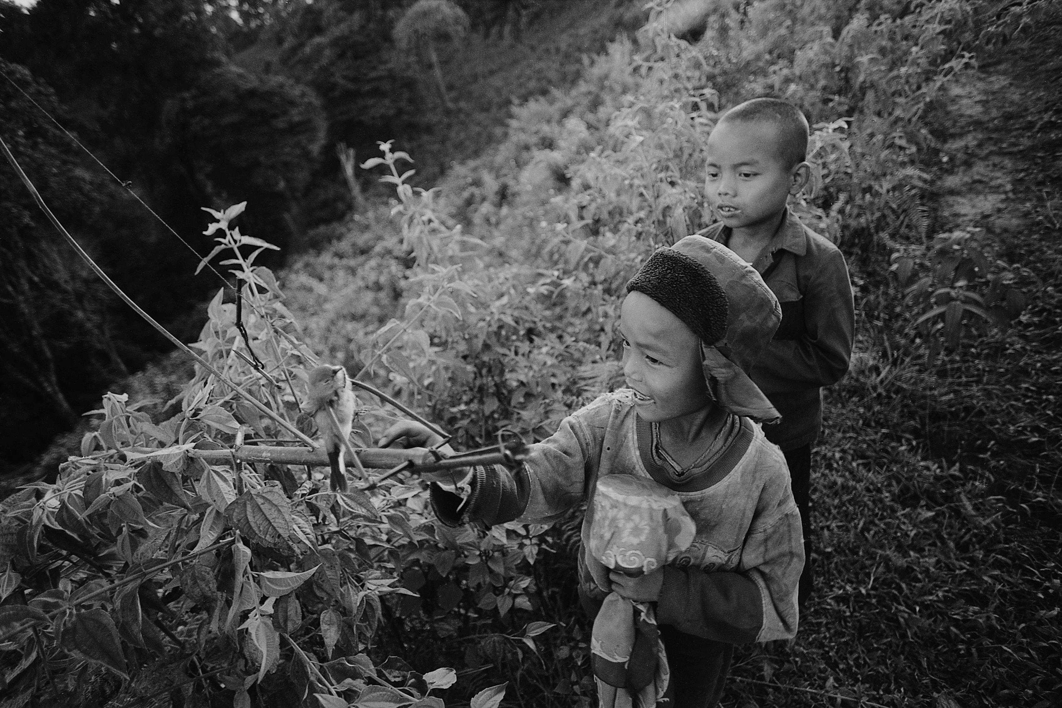 2002年5月,用飞蚂蚁当诱饵捕鸟的男孩。