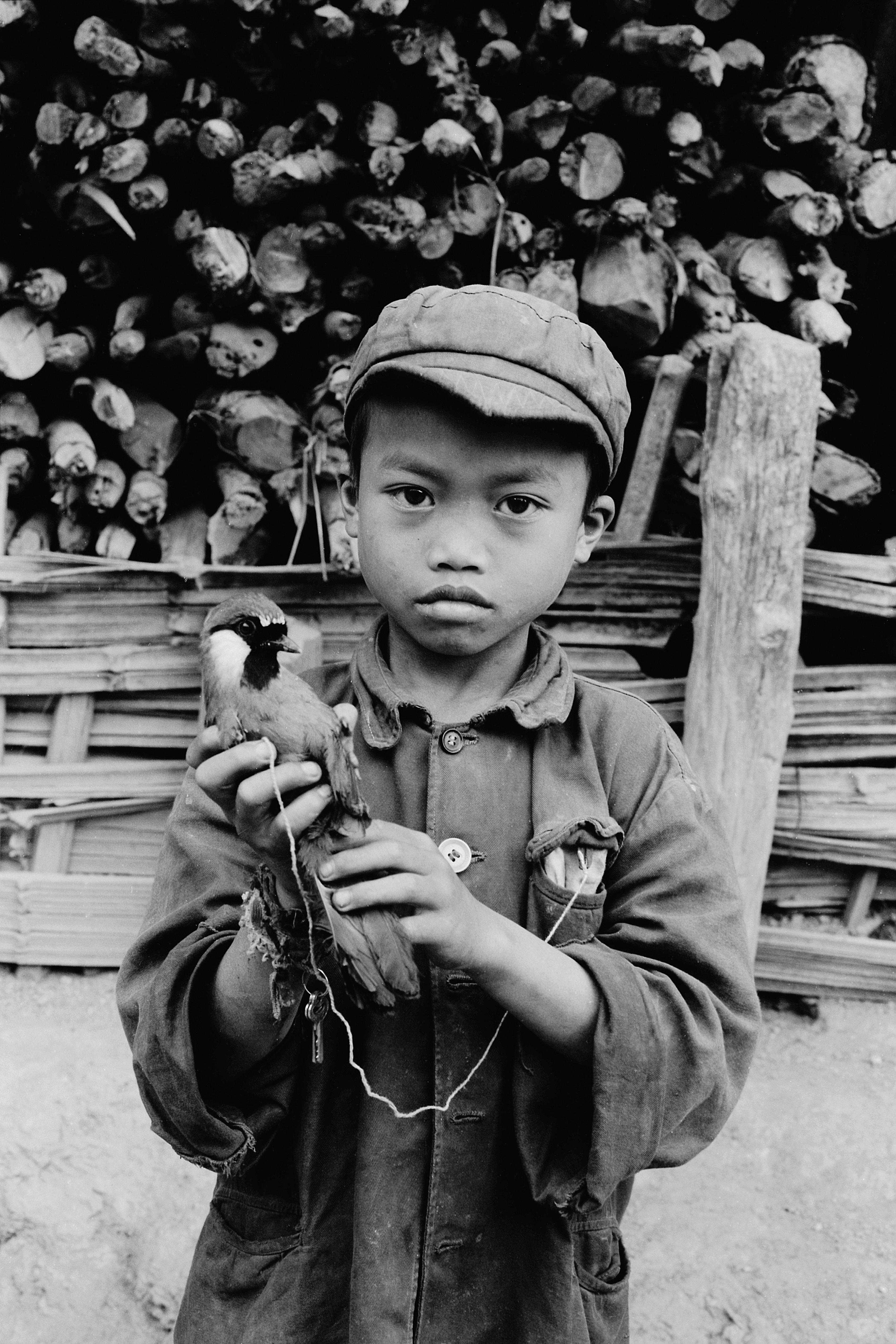 2002年5月,捕到小鸟当玩具耍的男孩。