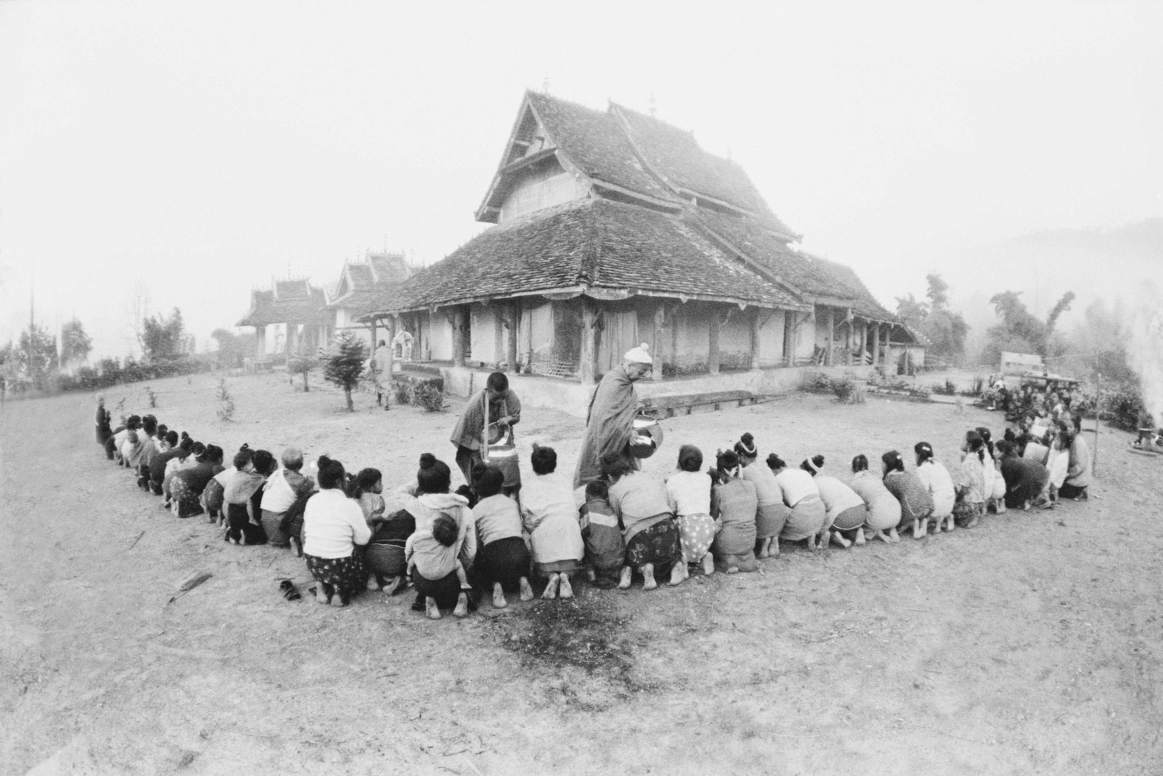 2003年10月,清晨,信众给僧侣赕去的饭菜。
