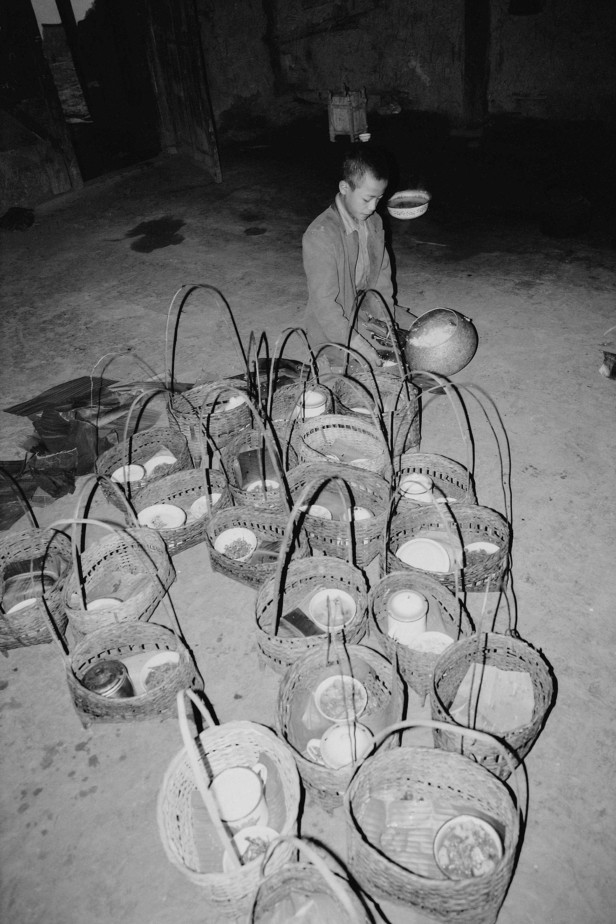 晨雾中,柔和的光线勾勒出寨子的轮廓,迷蒙、秀美!寨心开始有女人手捧用芭蕉叶包好的东西,顺序跪拜地上,队伍越排越长,村口一个佛爷领着个小和尚挑着竹篓、饭钵,径直走到跪拜于地的女人面前,佛爷嘴里念着经,虔诚接过女人用芭蕉叶包好双手举过头顶的饭菜倒进竹篓、饭钵,用树叶蘸些水洒在女人身上,诵经祈福。