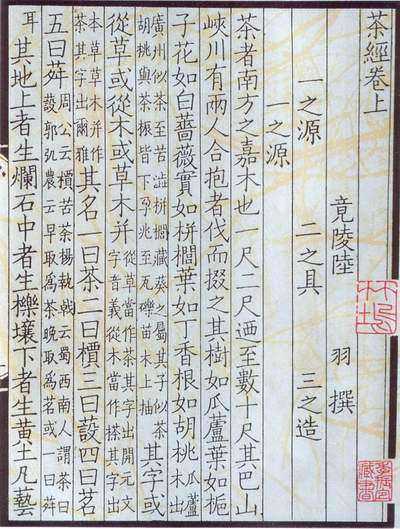 茶之为饮,发乎神农氏,闻于鲁周公,齐有晏婴,汉有杨雄、司马相如,吴有韦曜,晋有刘琨、张载、远祖纳、谢安、左思之徒,皆饮焉。滂时浸俗,盛于国朝,两都并荆俞[原注:俞,当作渝。巴渝也]间,以为比屋之饮。