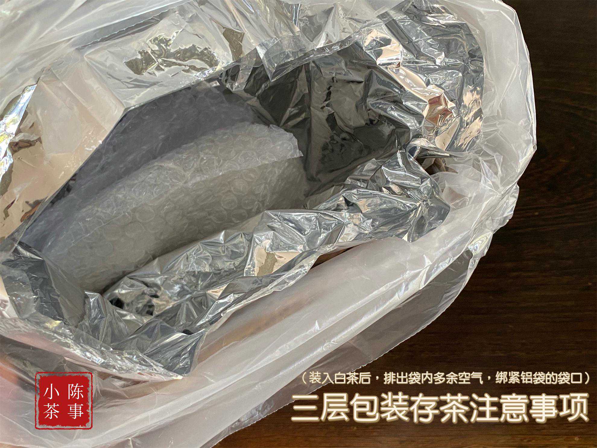 收纳整理这些零散茶饼时,最里面的塑料袋与铝袋,也是万万不能少的。