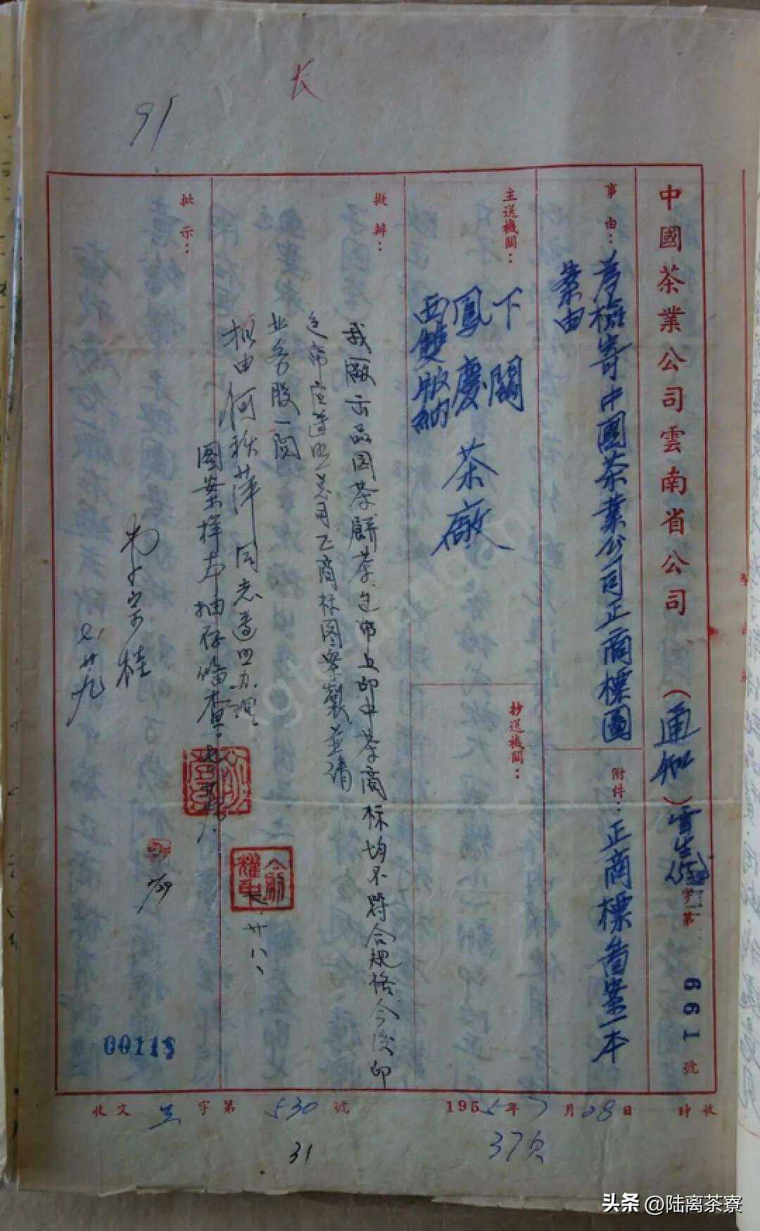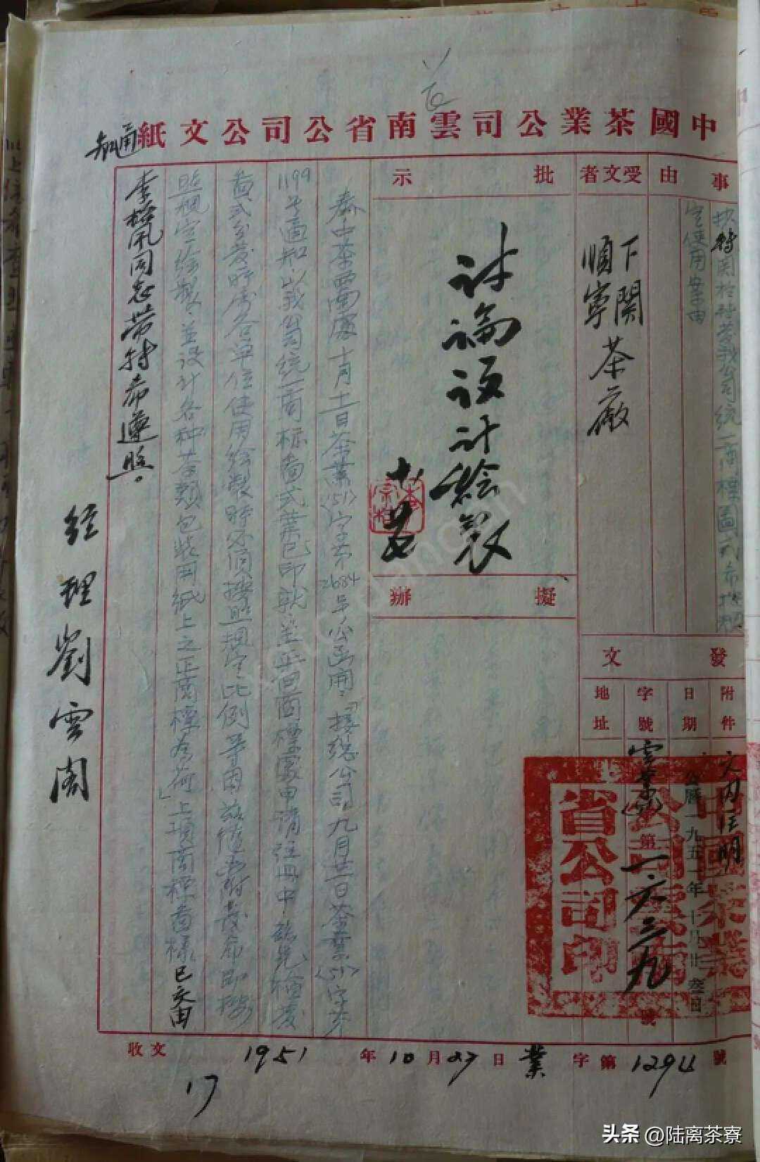 该通知下发给下关茶厂、凤庆和西双版纳茶厂后,下关茶厂的内部拟办意见提出:“我厂出品圆茶、饼茶包纸上印中茶商标均不符合规格,今后印包纸应遵照总司正商标图案制。”