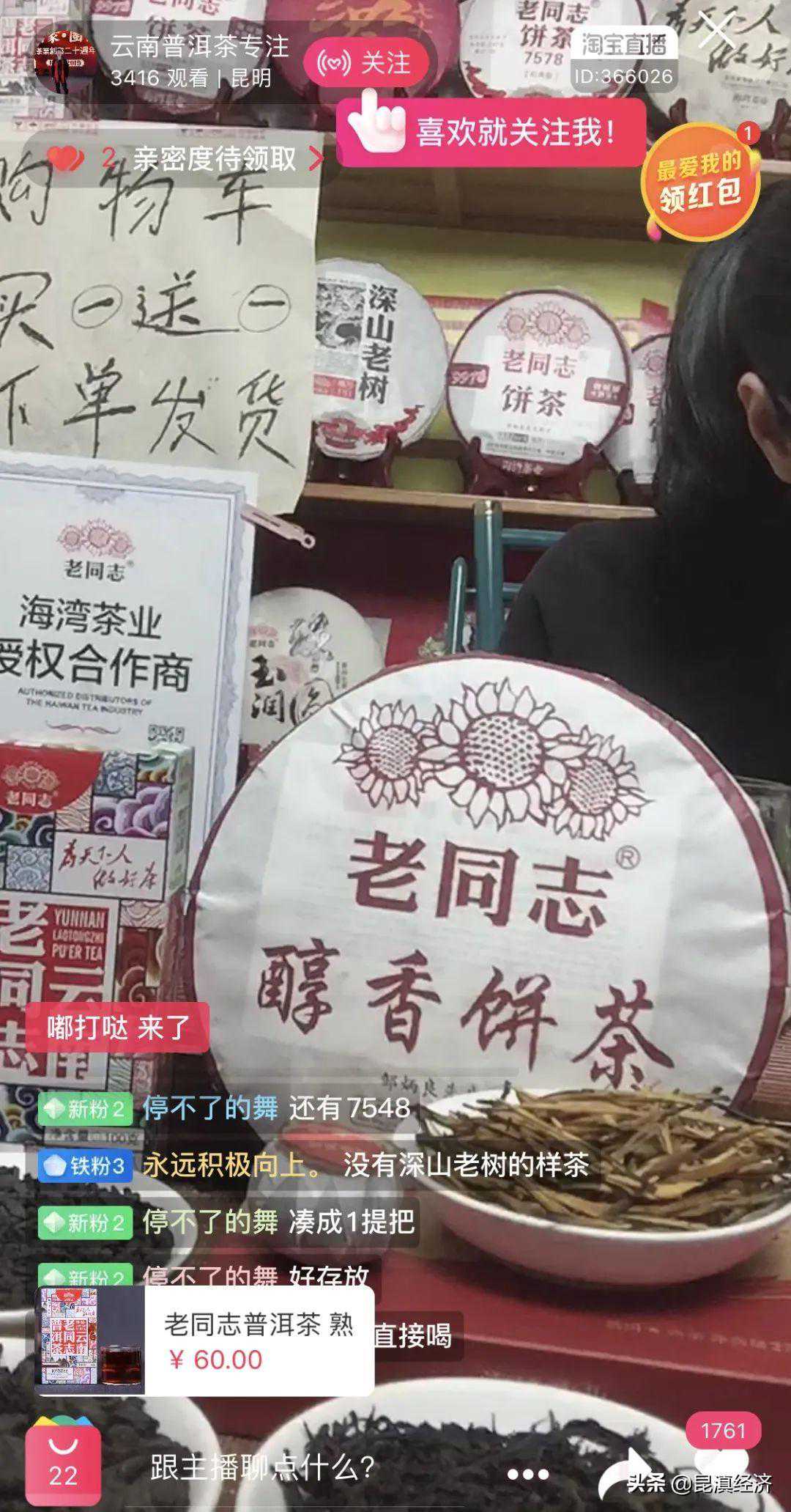 茶商直播卖茶。