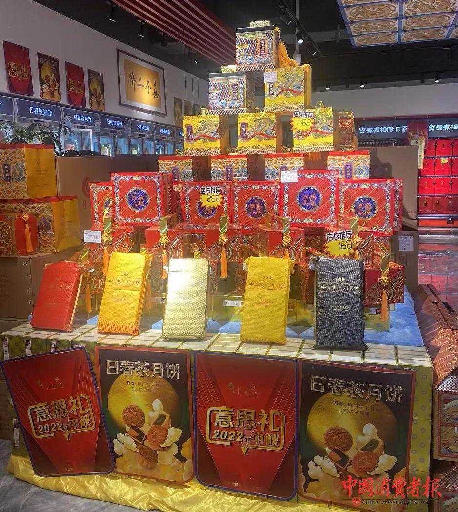 8月13日,《中国消费者报》记者走进日春茶业福州温泉店,看到店中央展台上的日春茶月饼礼盒堆得如山高。