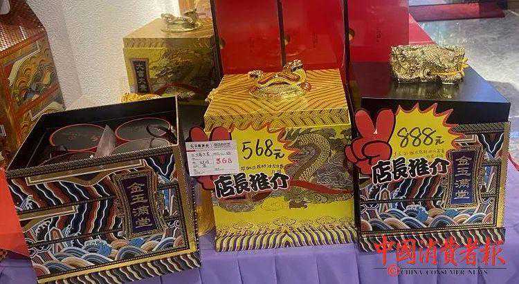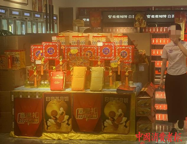随后,记者走访日春茶业福飞店、湖东店、华林店3家门店,展示台上均未见到金玉满堂和大富大贵包装箱,也未见包装成条状的“888、568”中秋月饼。在记者询问后,店员才拿出了金玉满堂、大富大贵包装箱以及“888、568”中秋月饼供记者选购。